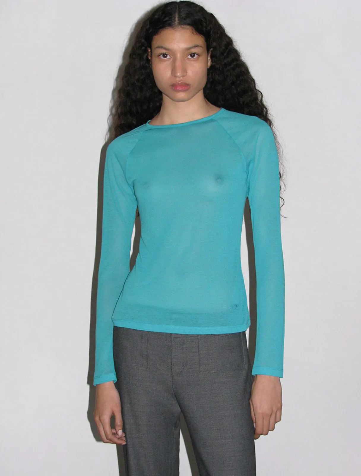 Delikat, Gennemsigtig TOp Med Raglan-Ærmer Og Broderet Kant.