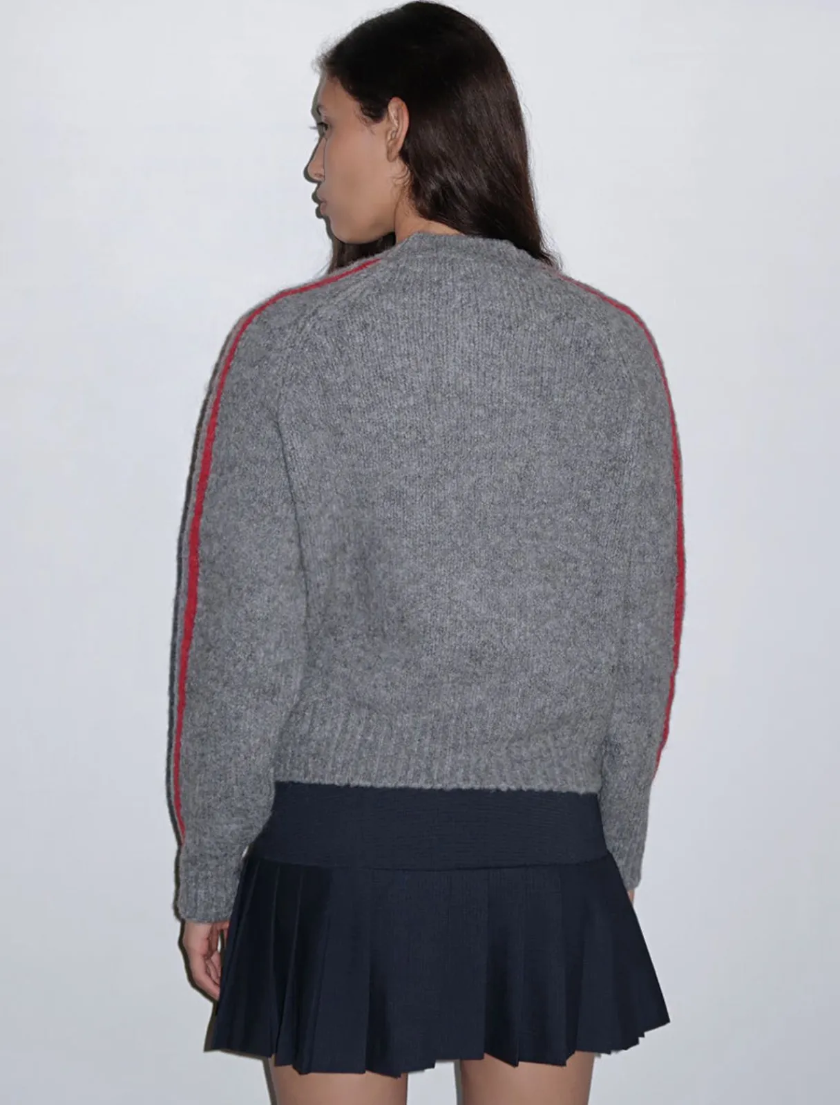 Blød Striktrøje Med Sports-Løbesømme På Ærmer.