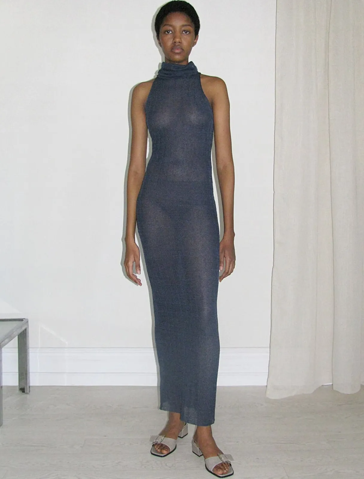 Draperet Højhalset Lang Kjole.