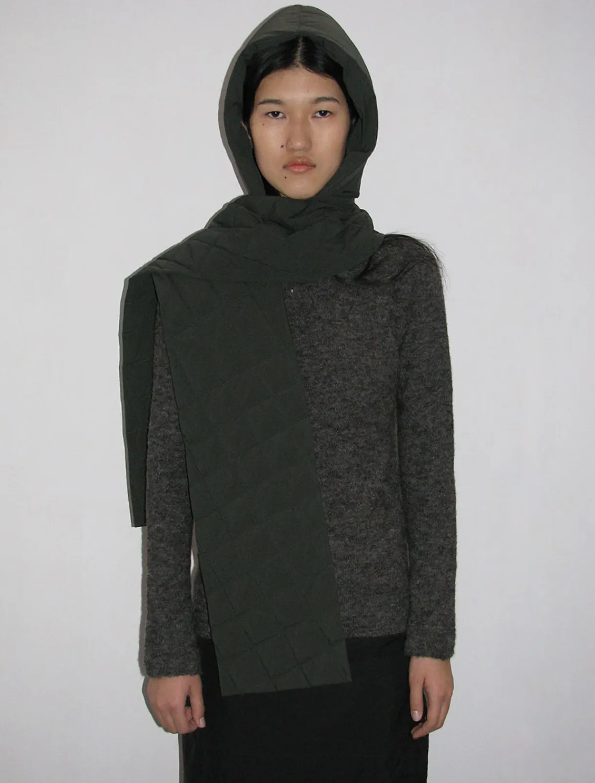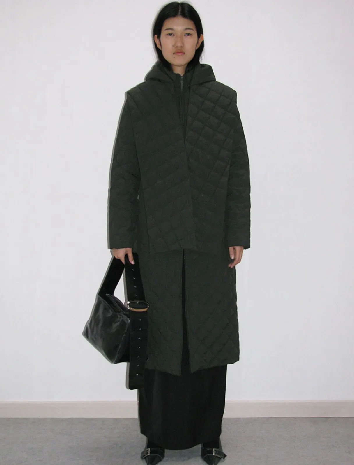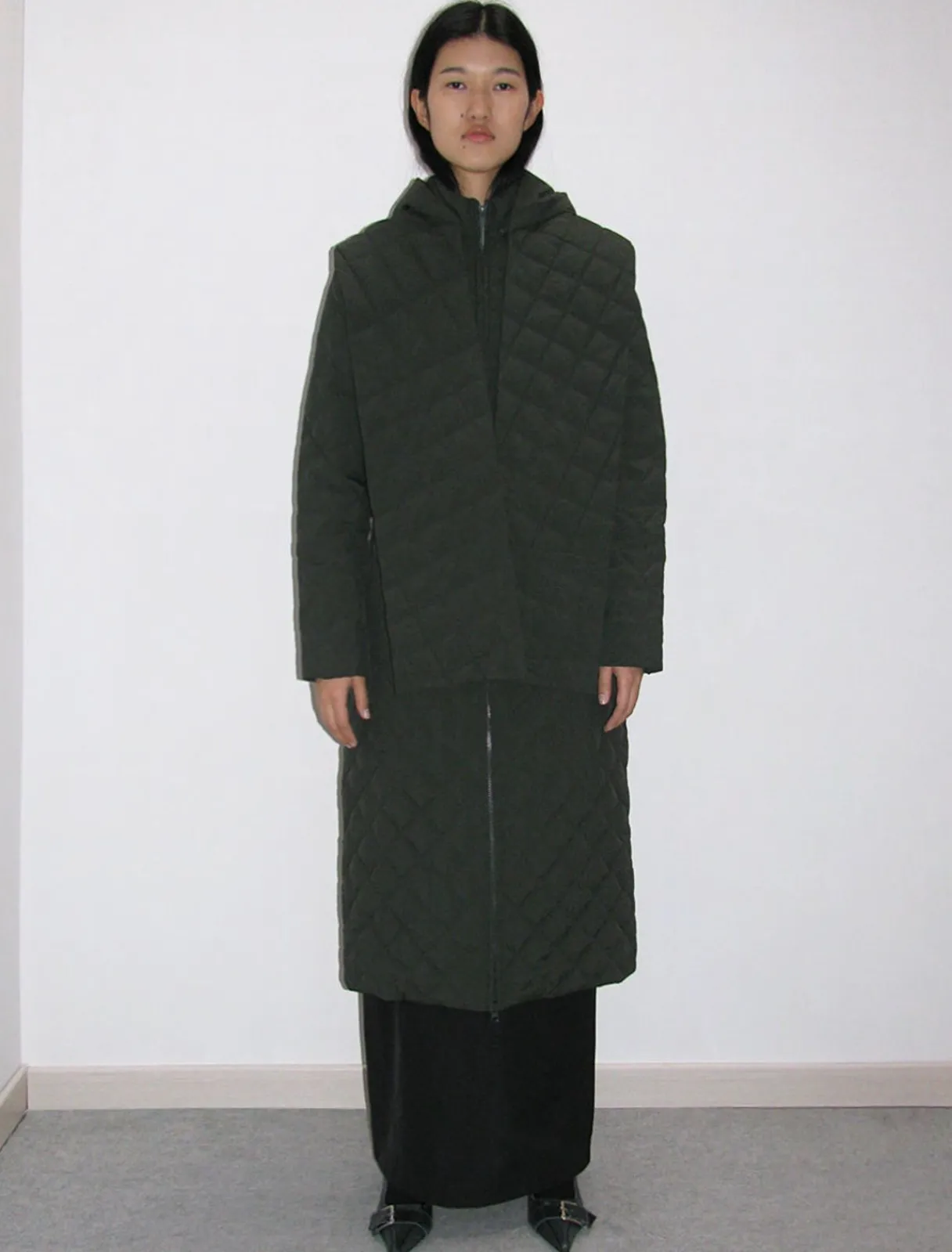 Lang Polstret Puffer Med Aftagelig Hætte/Tørklæde.