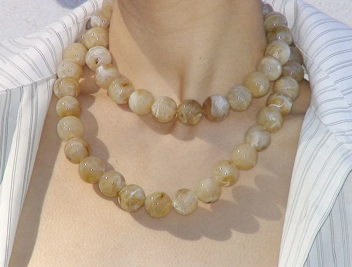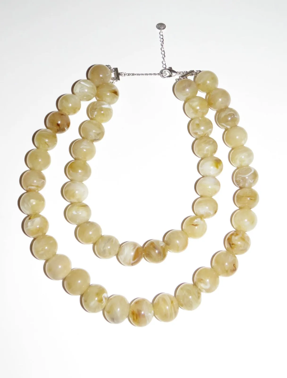 Dobbelt, Justerbar Halskæde Med Harpiksperler.