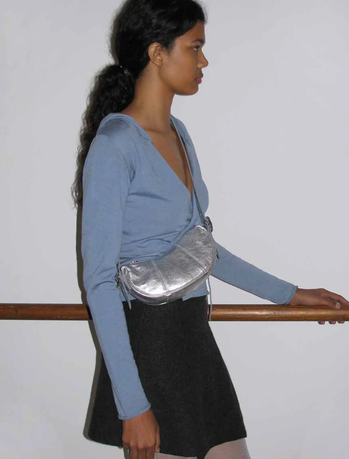 Mini-Bønneformet Lædertaske Med Præget Paloma-Uldlogo. Farve Sølv.