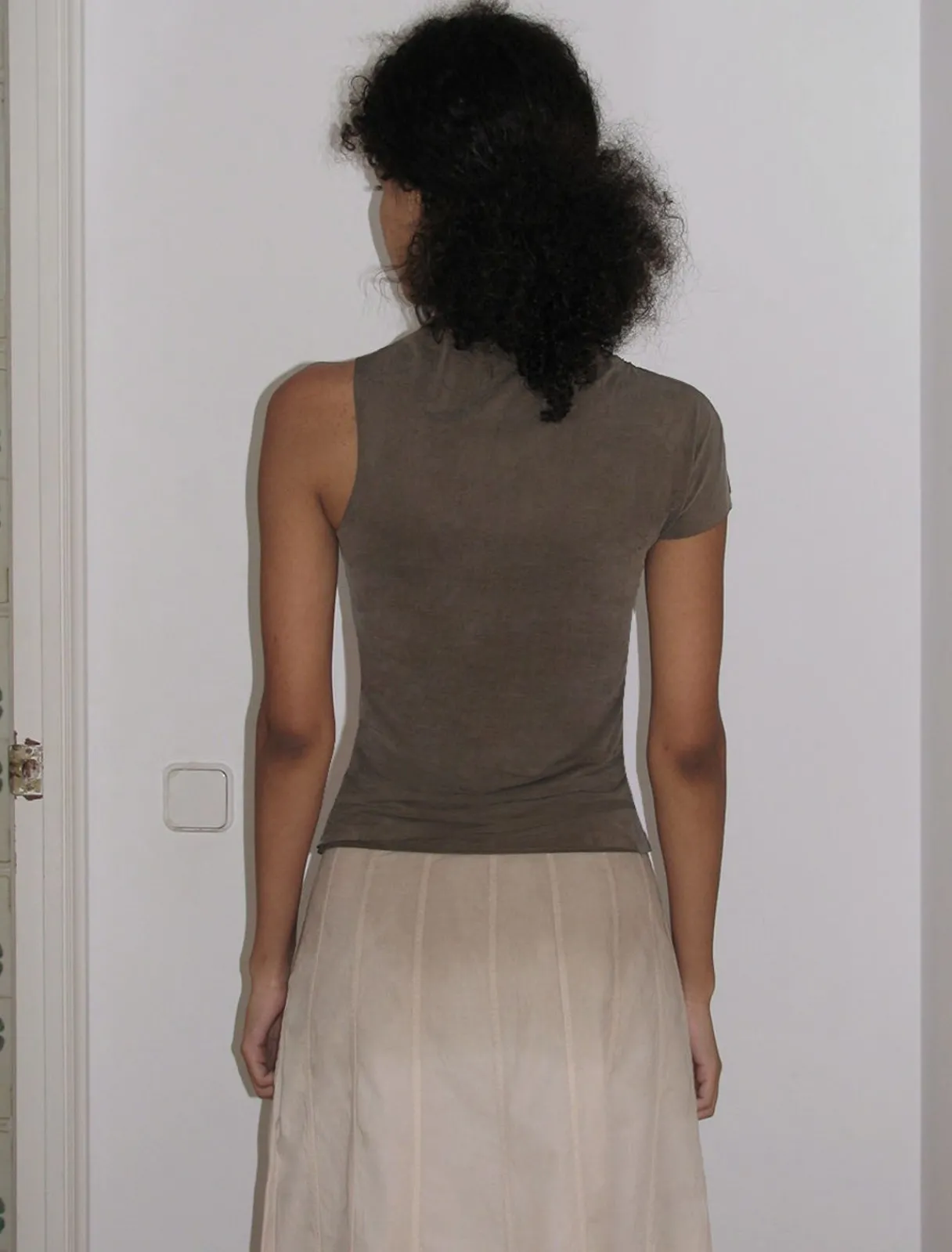 Dobbeltlags, Asymmetrisk Ærme, Blød Hals Cupro Top Med Laserskårne Kanter.