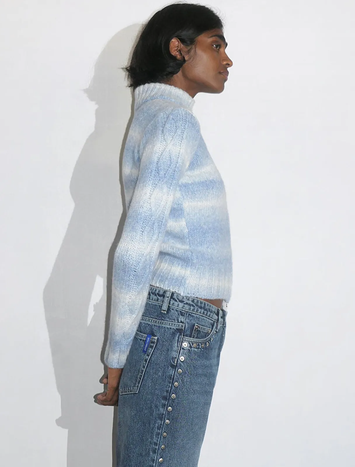 Blød, Gradient Strikket Cardigan Med Flettet Detalje Langs Ærmerne.