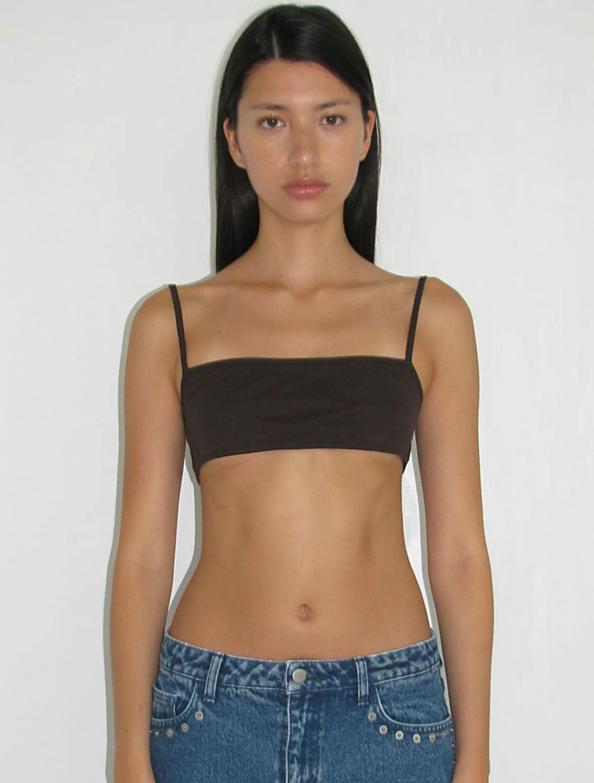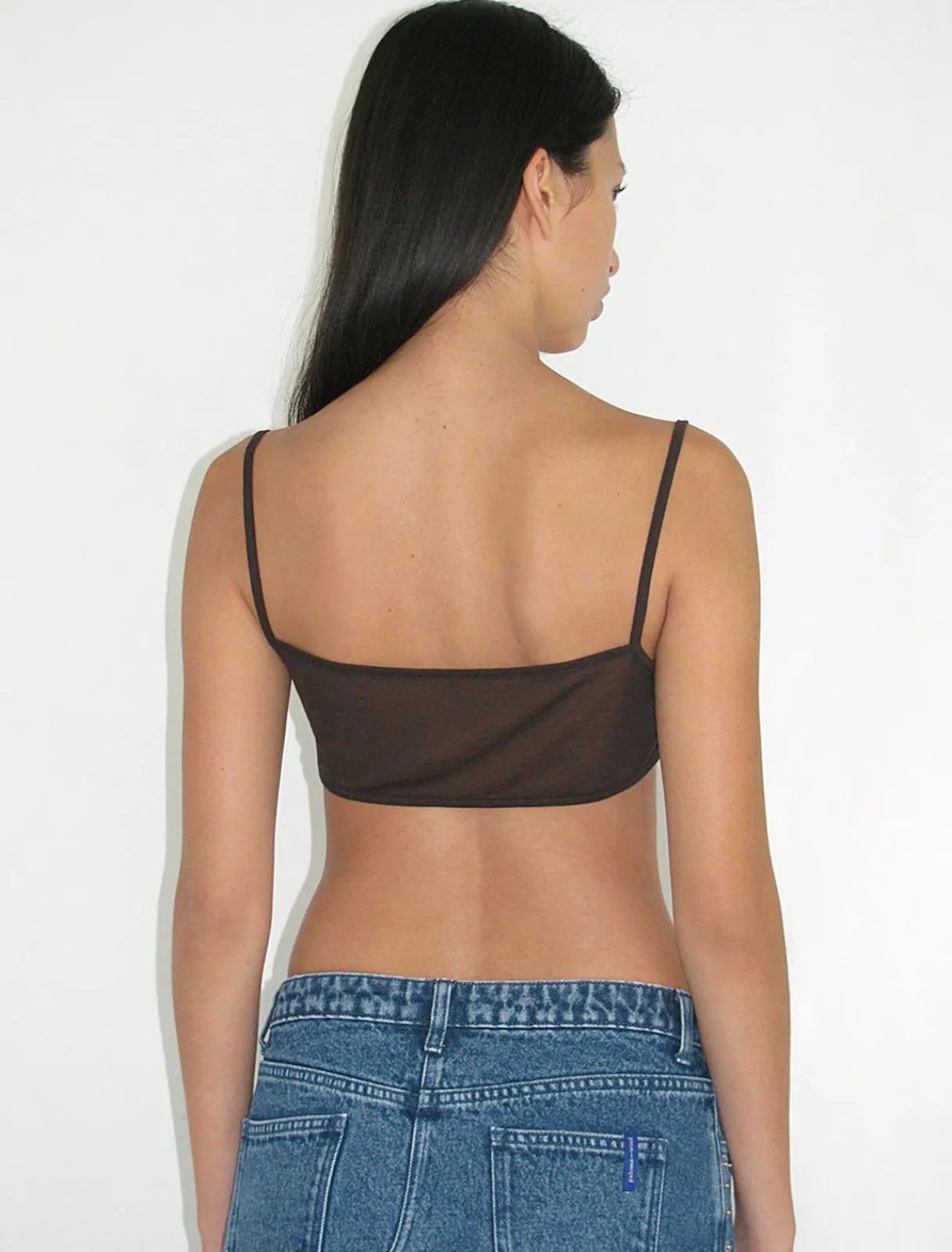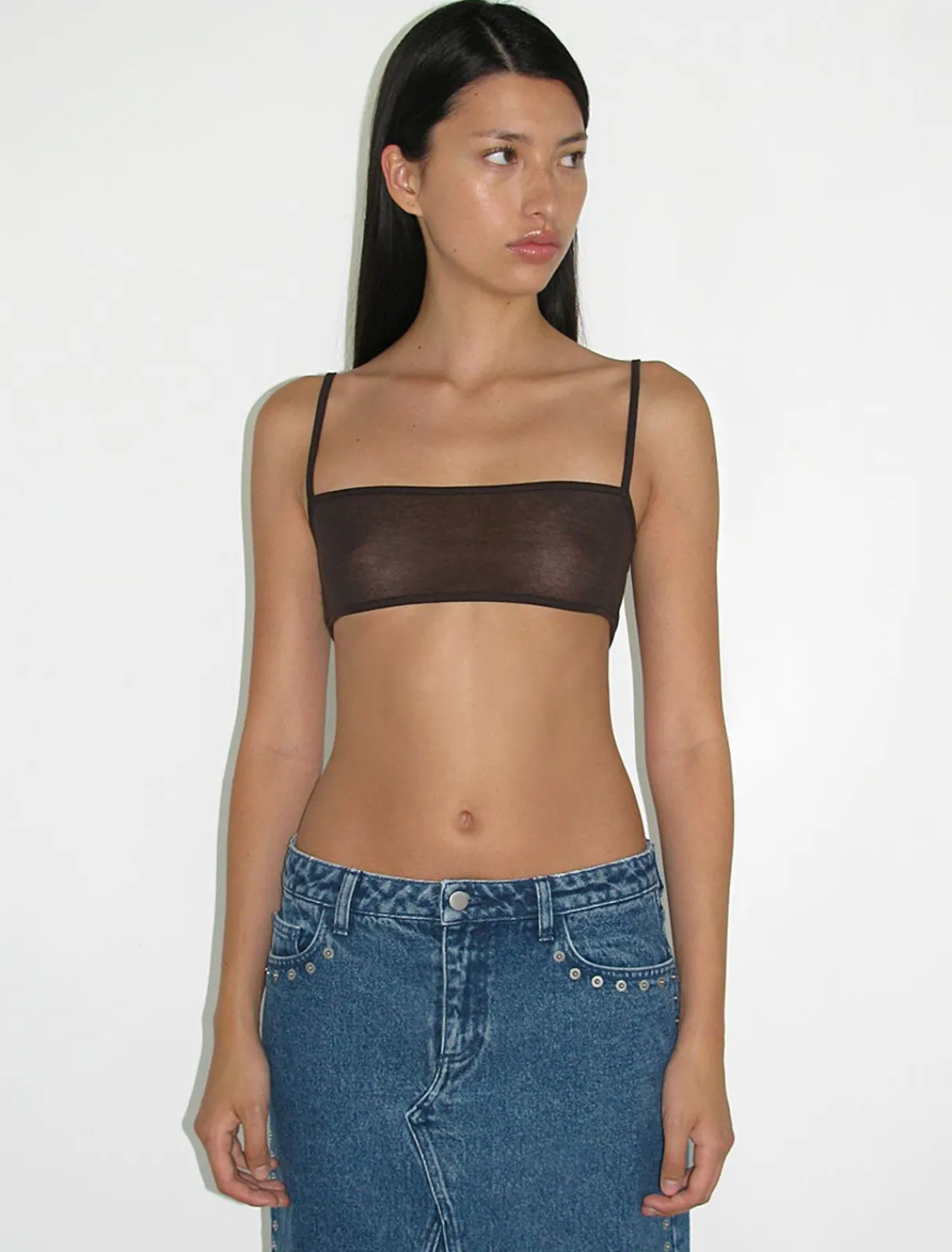 Vendbar Strappy Crop Top. Den Ene Side Er En Smule Gennemsigtig, Mens Den Anden Er Uigennemsigtig.