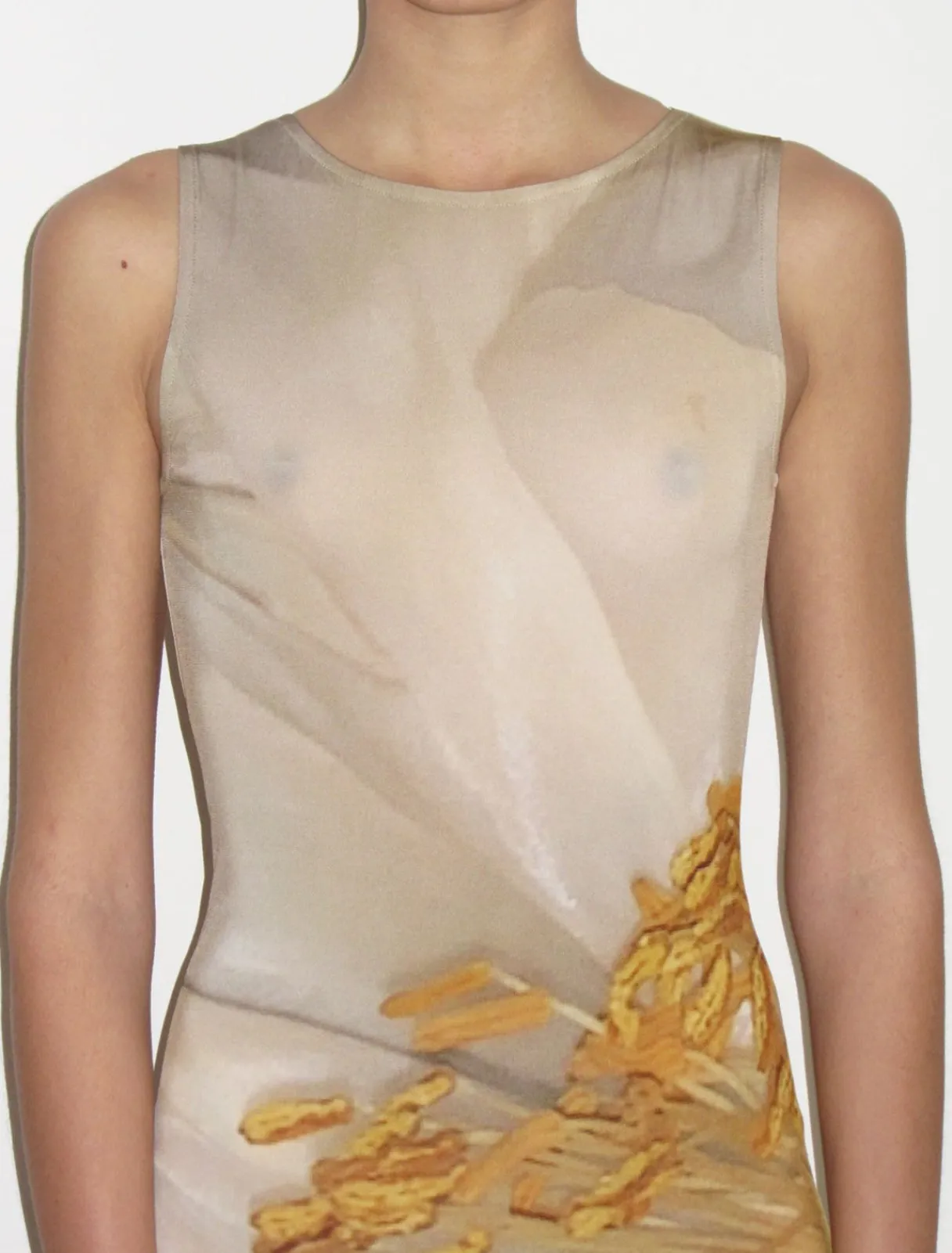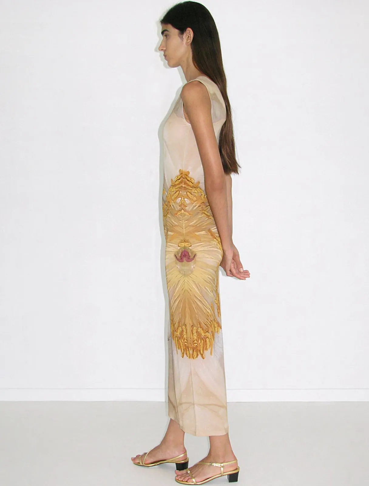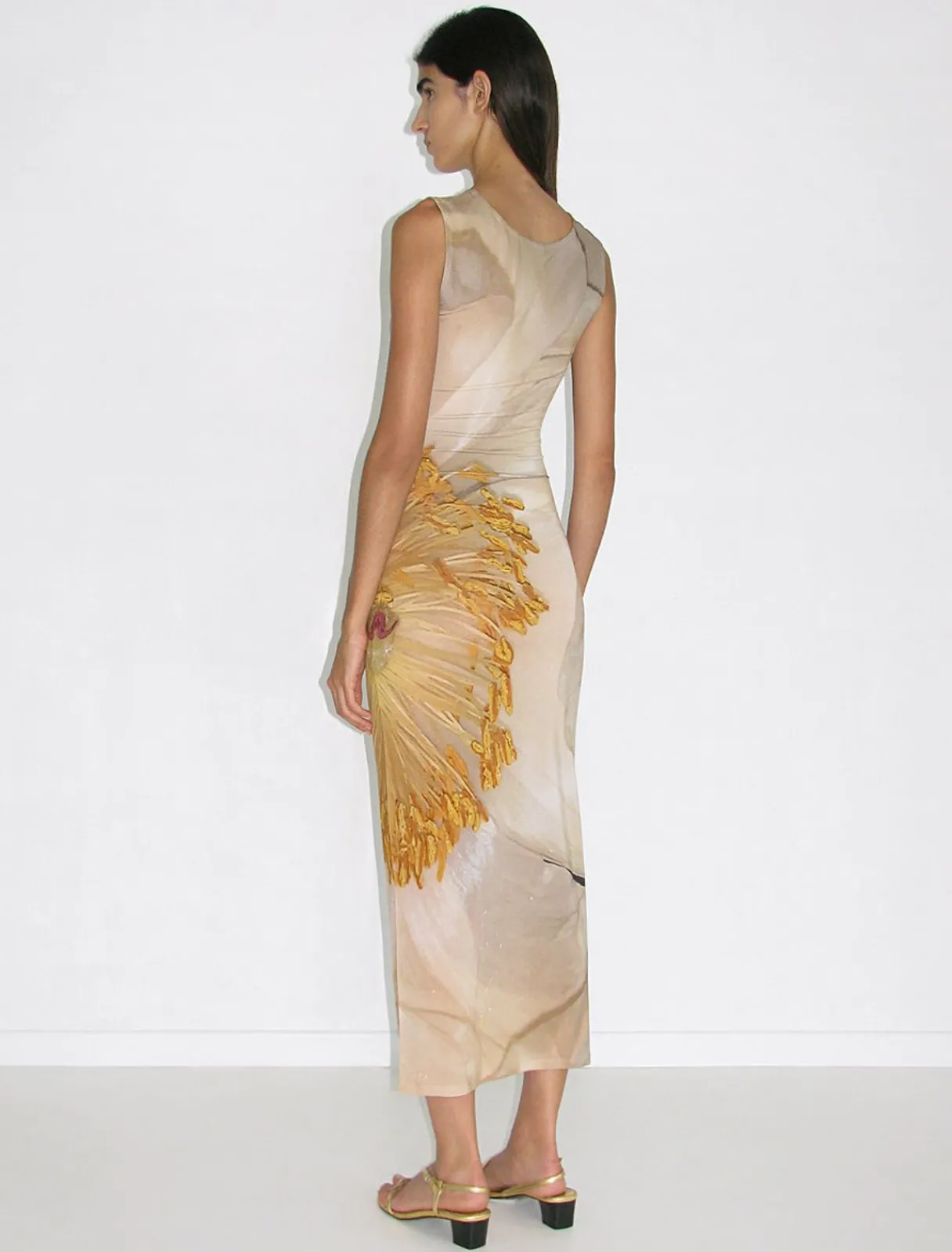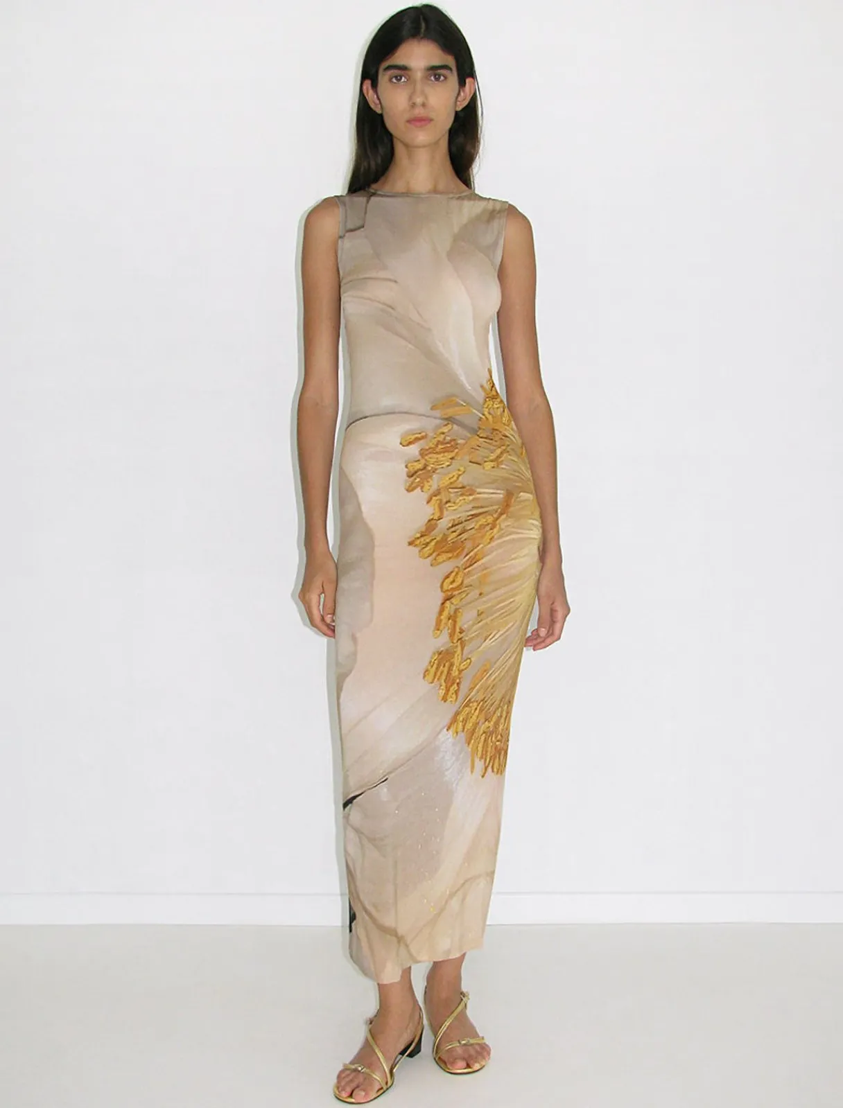 Langt Gennemsigtig, Figursyet Lang Kjole Med Blomsterprint.