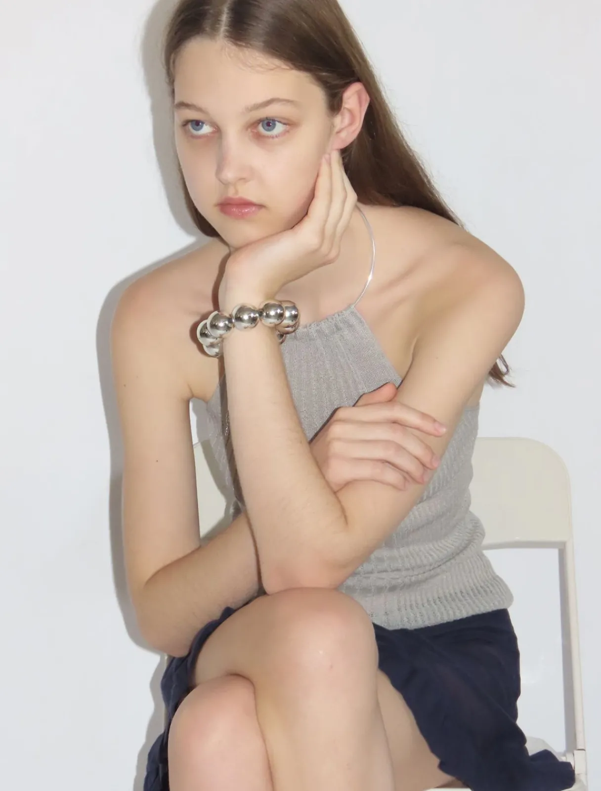 Justerbart Armbånd Med Store Forsølvede Perler.