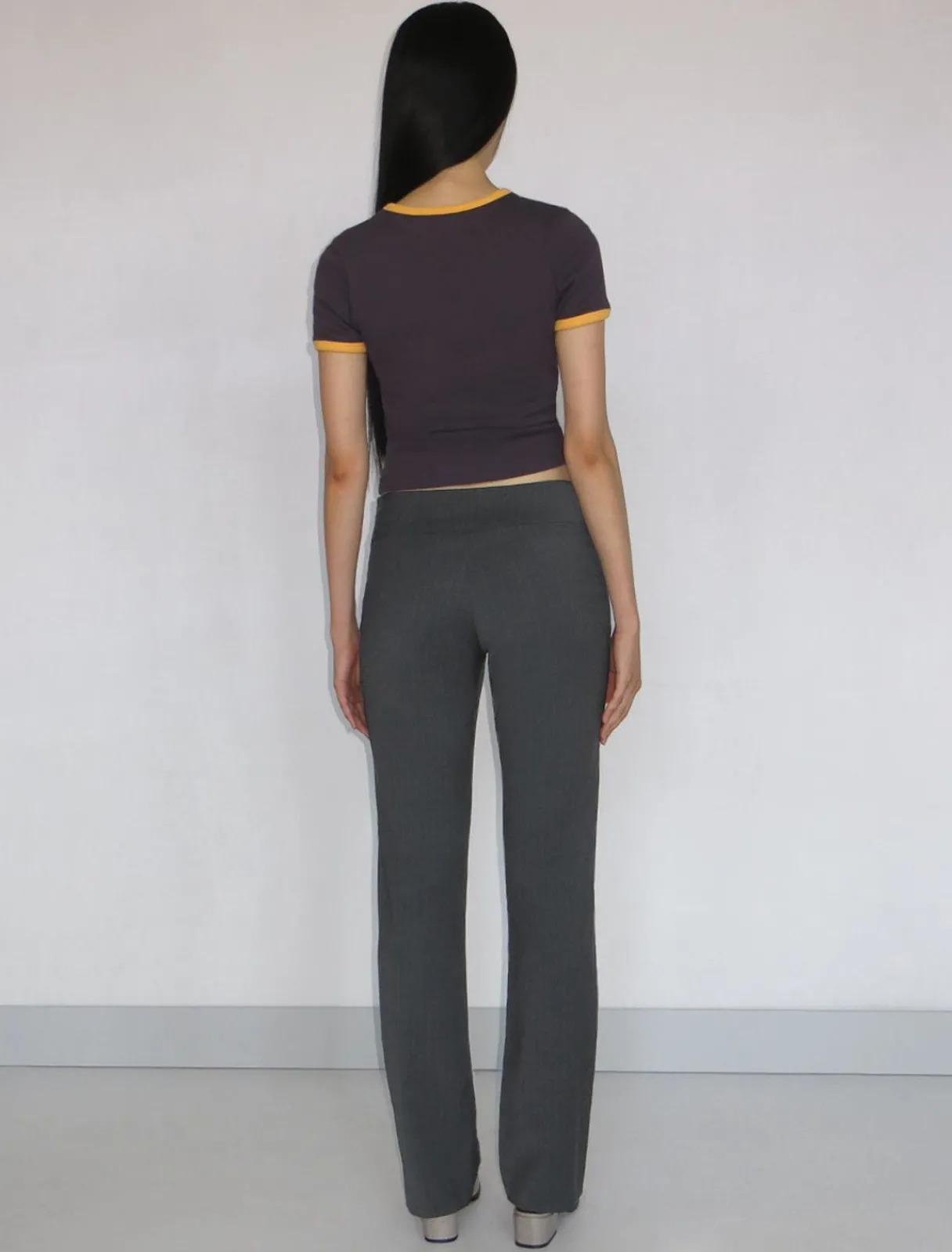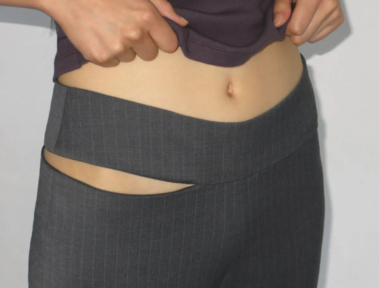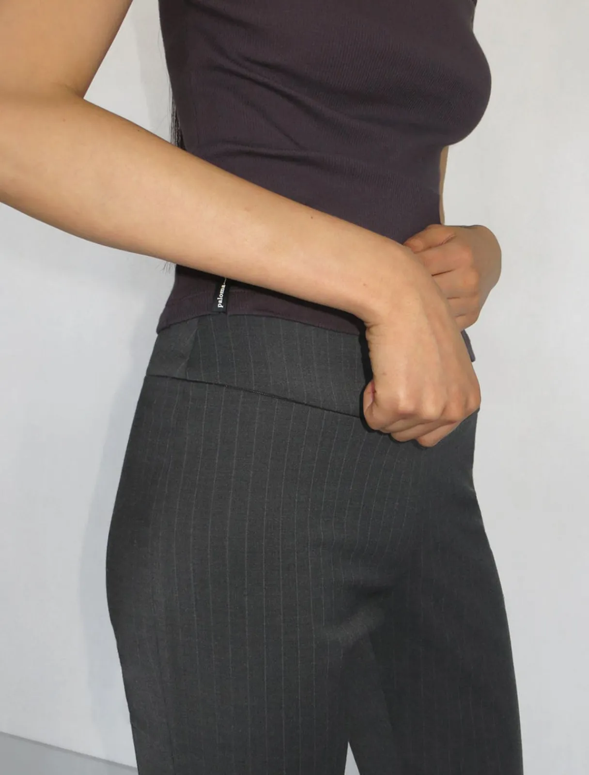 Nålestribede, Lave Bukser Med Lige Ben Med Lynlåsdetaljer I Den Ene Hofteside.