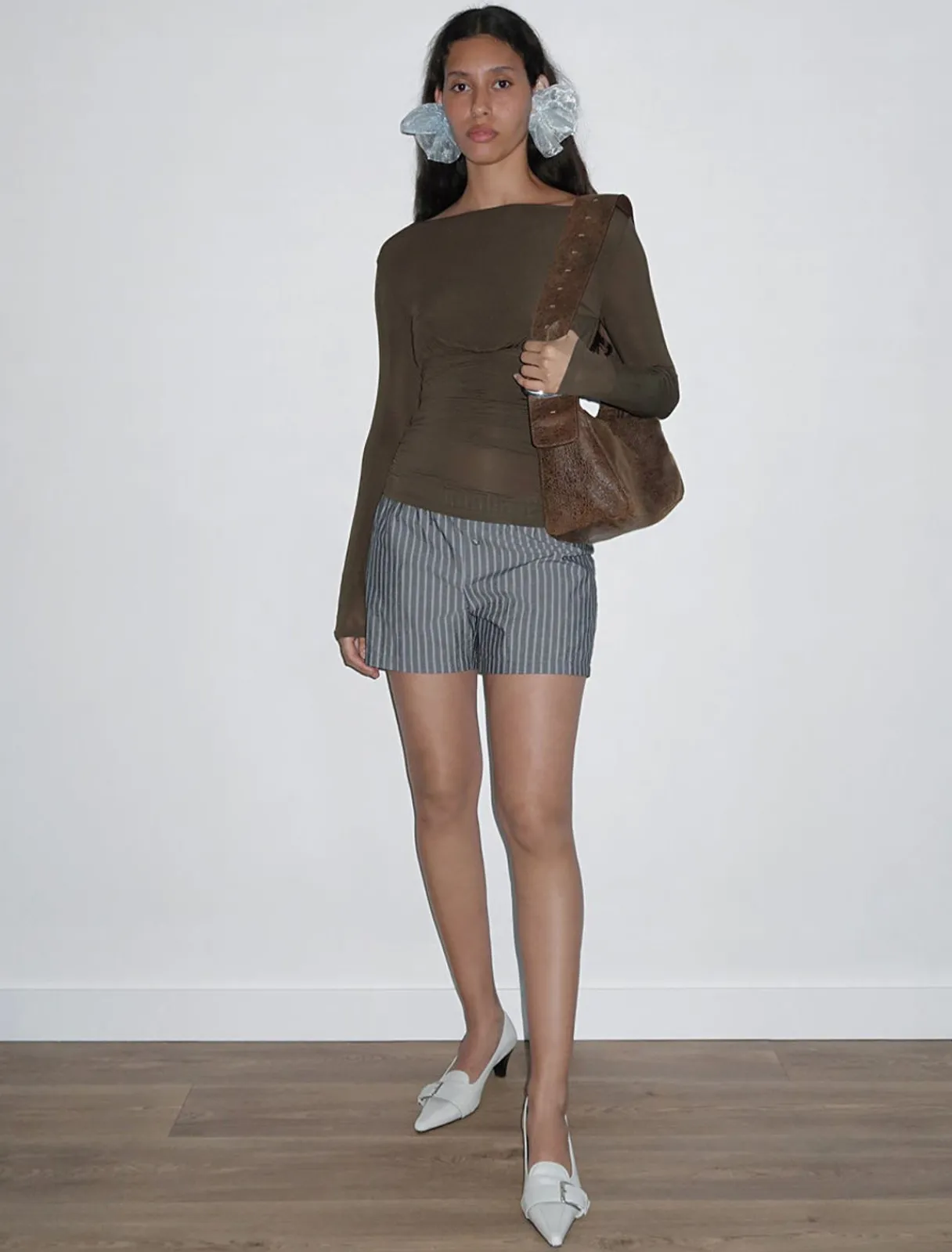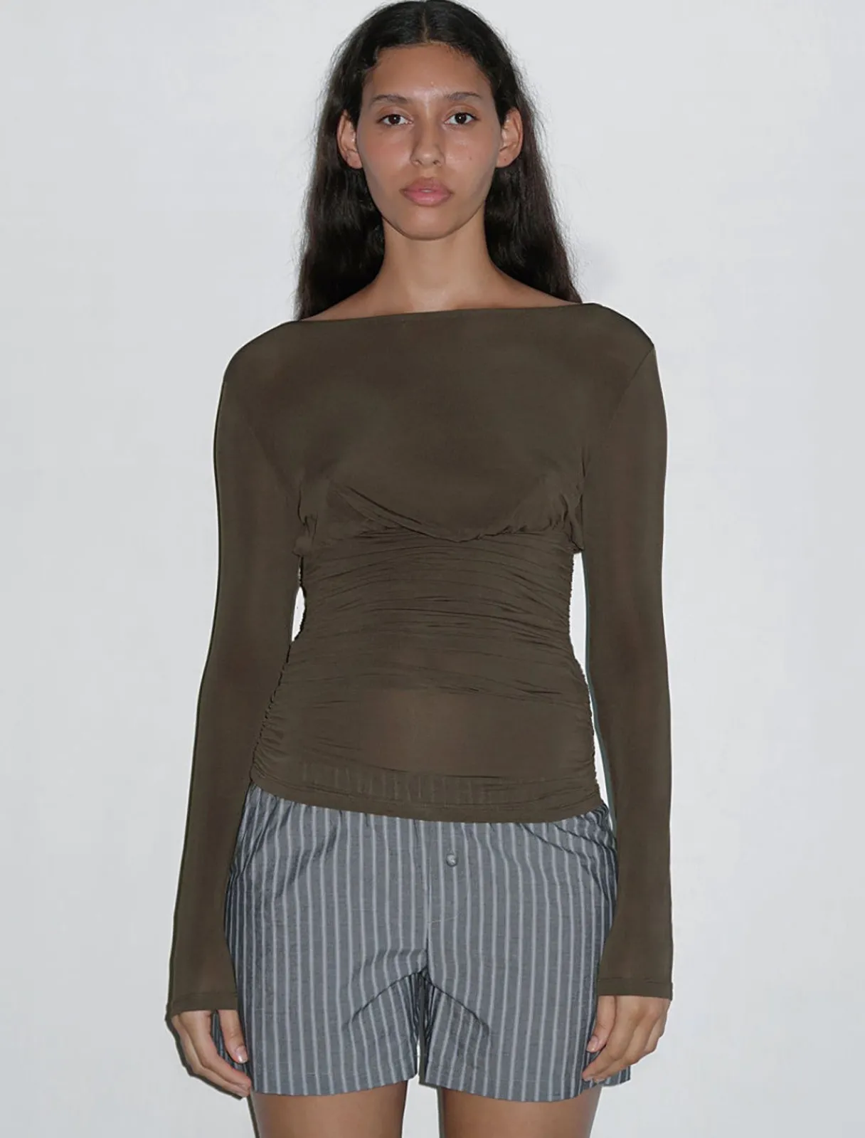 Delikat, Let Gennemsigtig, Langærmet Draperet Top.
