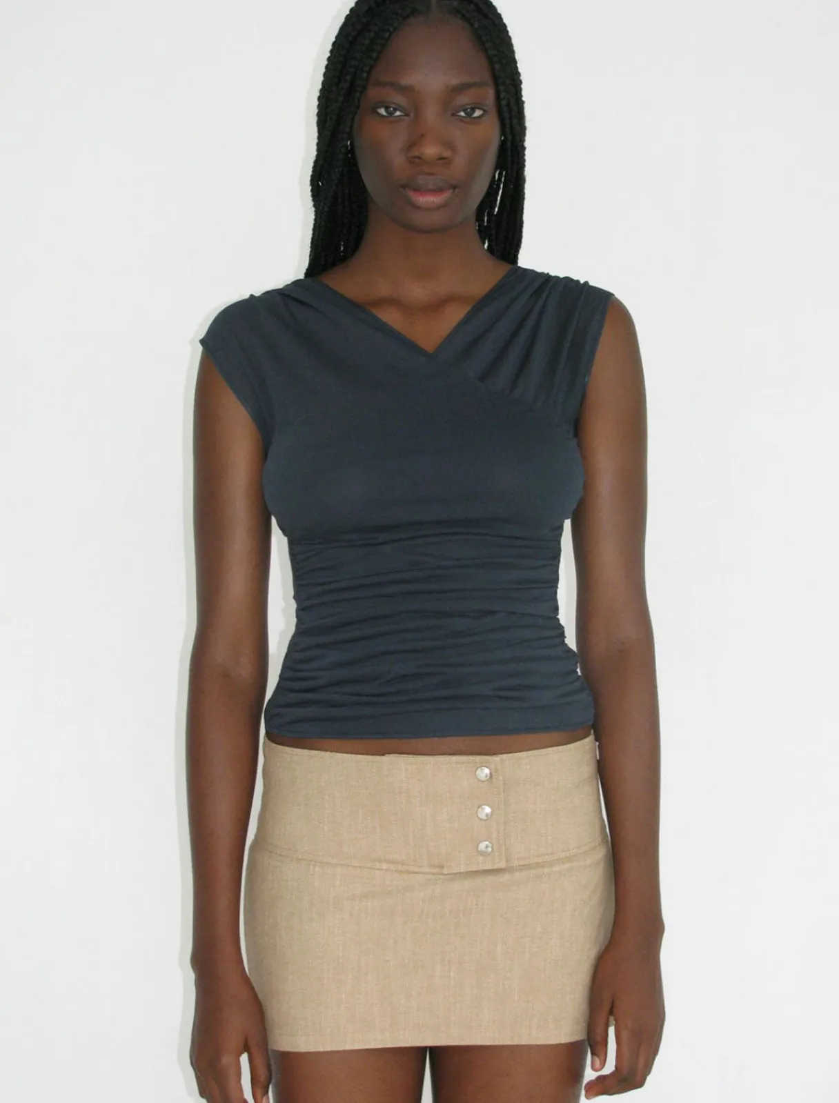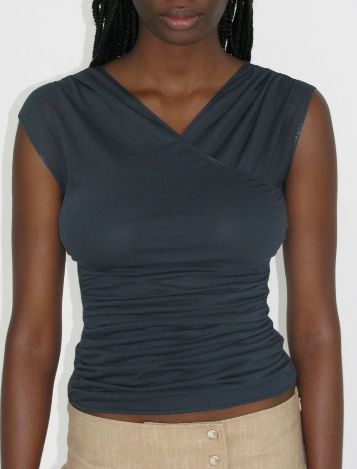 Sart, Let Gennemsigtig Krydstop. Stofoverlayet Giver Mere Dækning Foran End Bagpå.