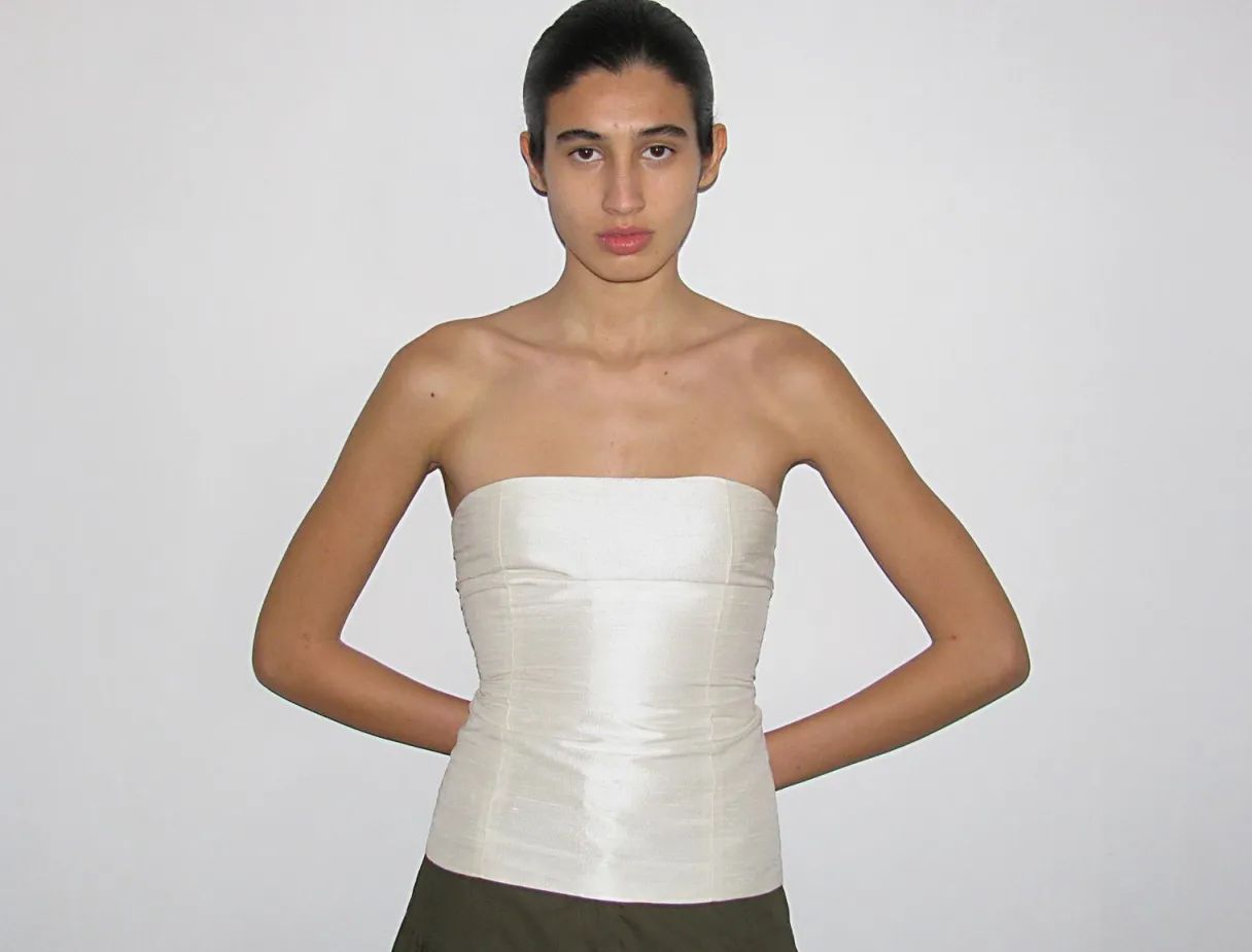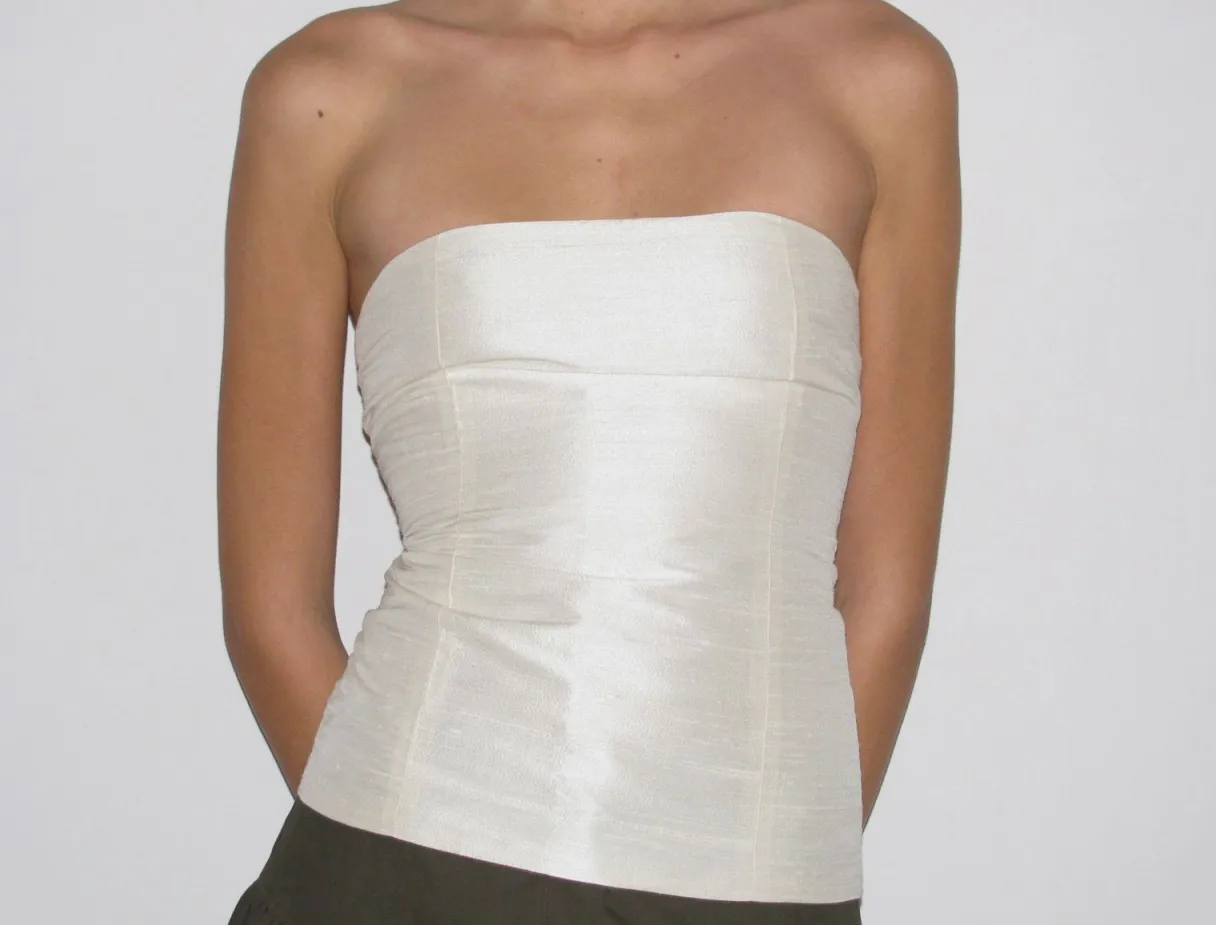 Silke Bandeau Top Med Justerbart Slips På Ryggen.