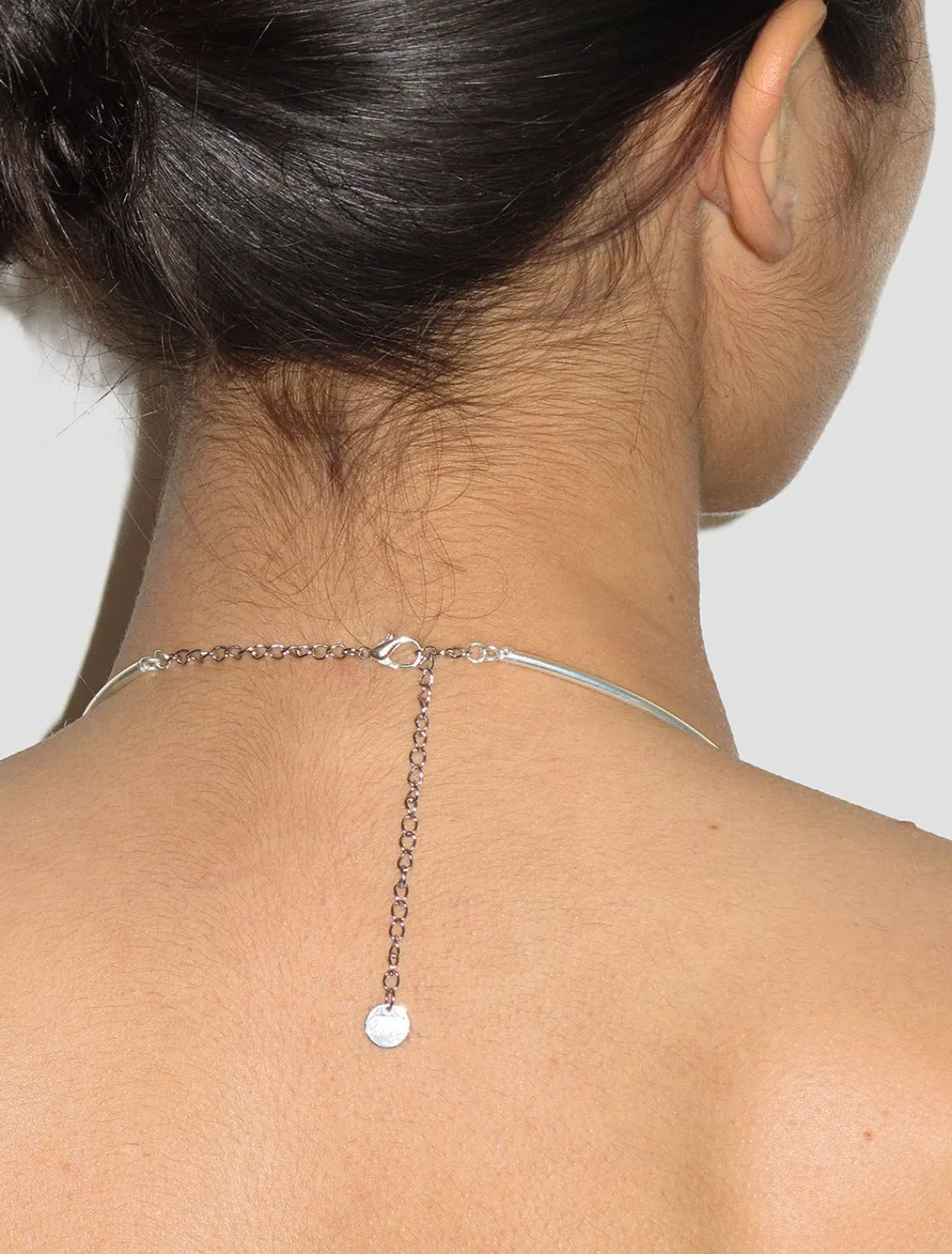 Halsudskæringen Har En Metalring Med En Justerbar Kæde Med En Pw Charm.