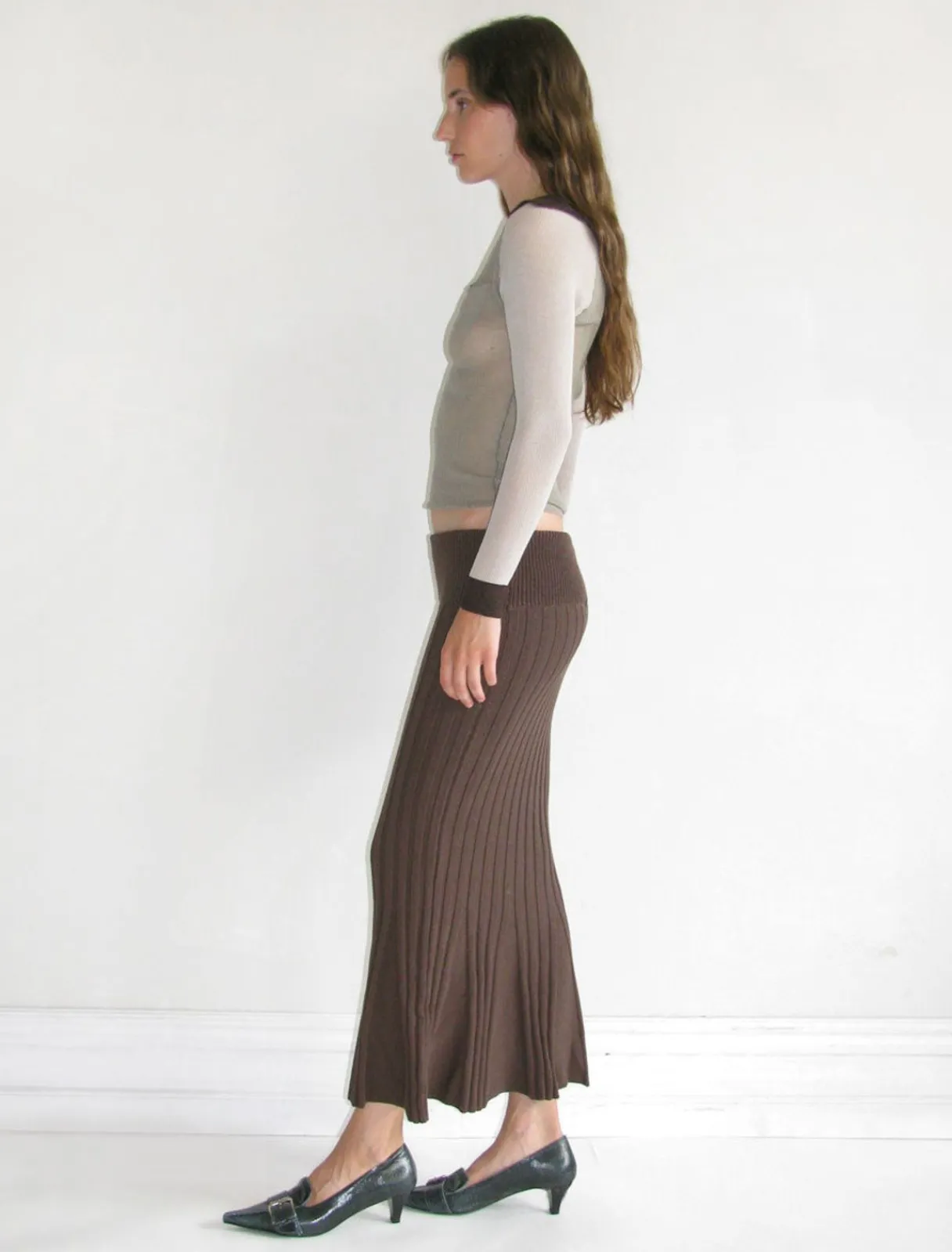 Udvidet Strikket Lang Nederdel Lavet Af Et Blødt Garn.