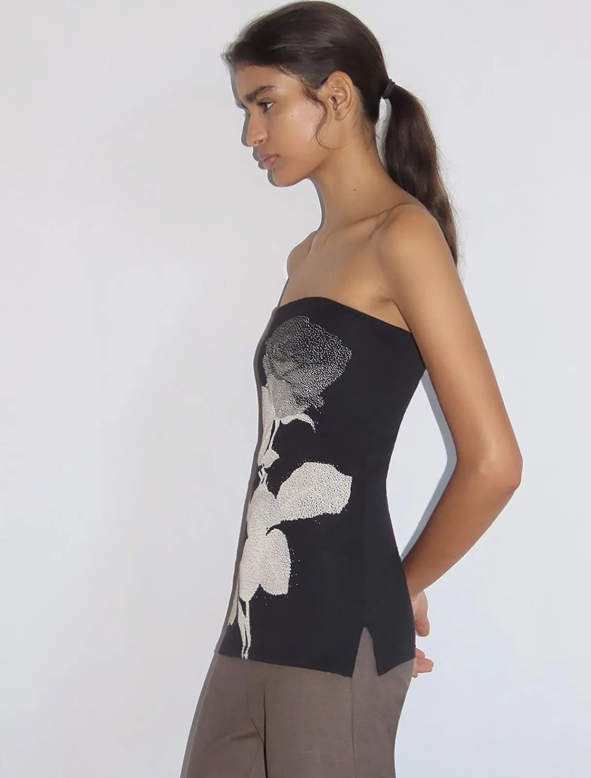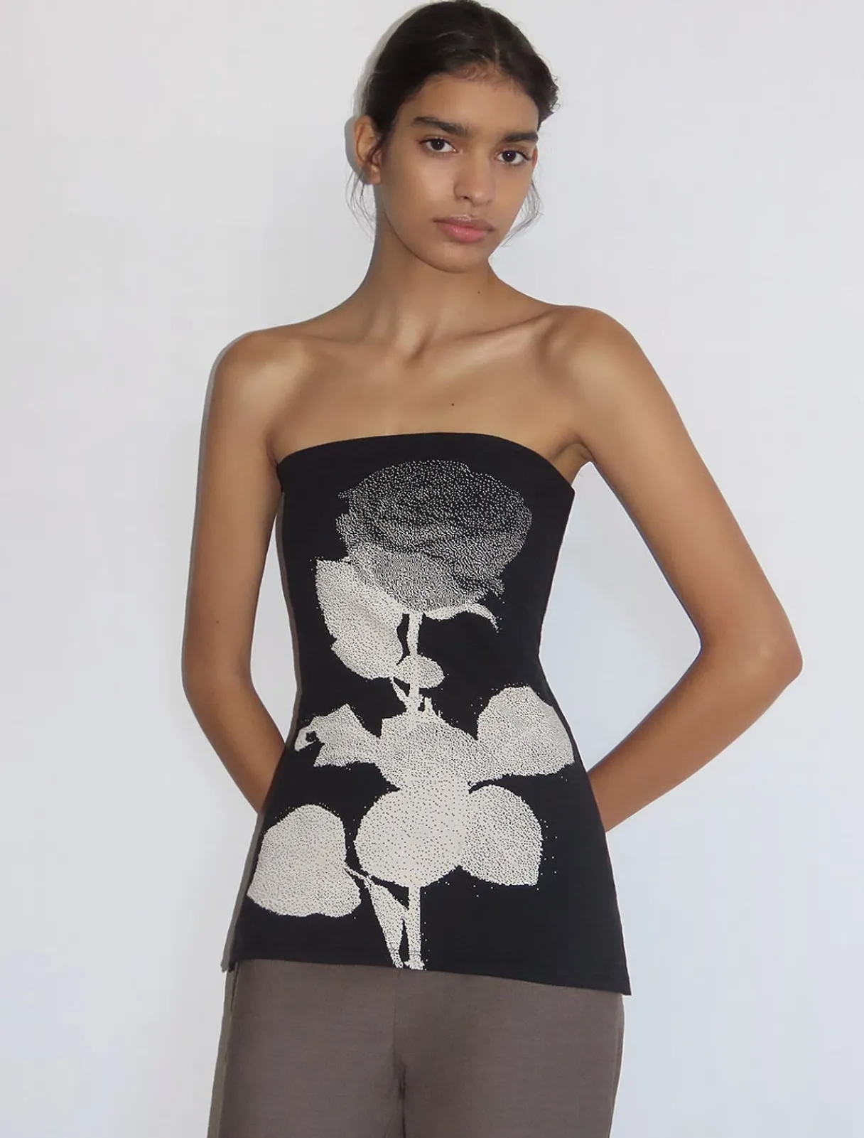 Blød, Figursyet Bandeau-Top Med Blomsterprint.