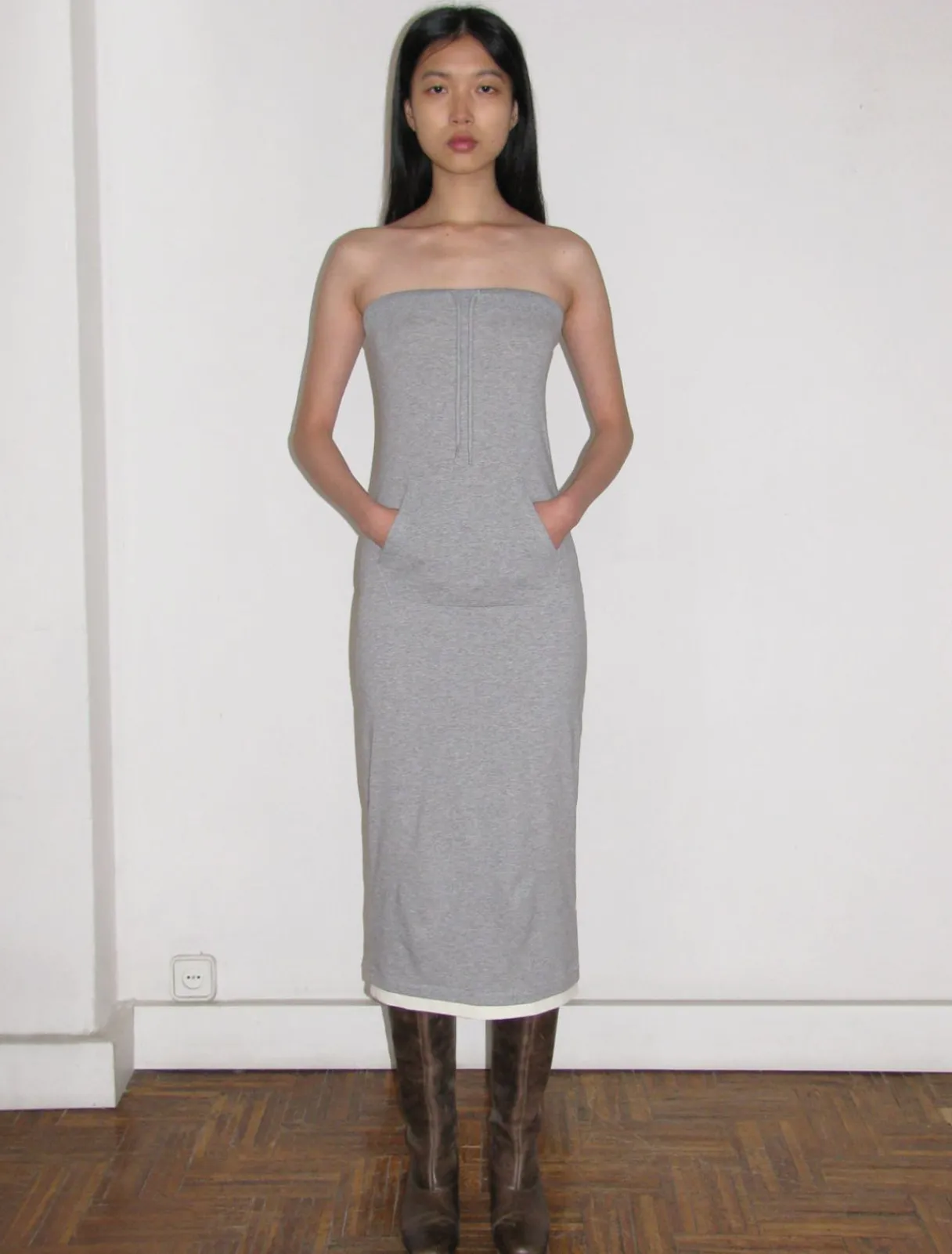 Kjole I Bandeau-Stil Med Dobbeltlagseffekt, Justerbar Snøre Foroven Og Lomme I Sweatshirt-Stil.