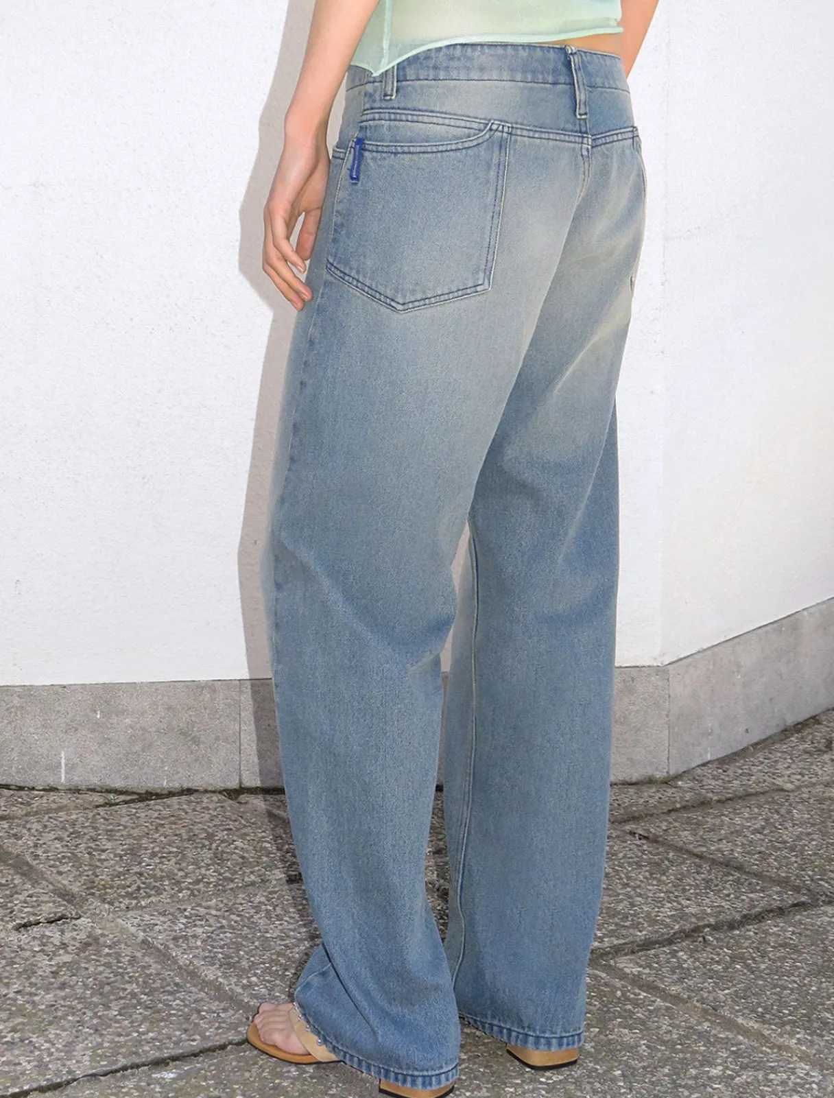 Afslappet Pasform, Vaskede Denimbukser Med Forreste Sømme Og Forskudte Baglommer. Har Et Pw-Tag.