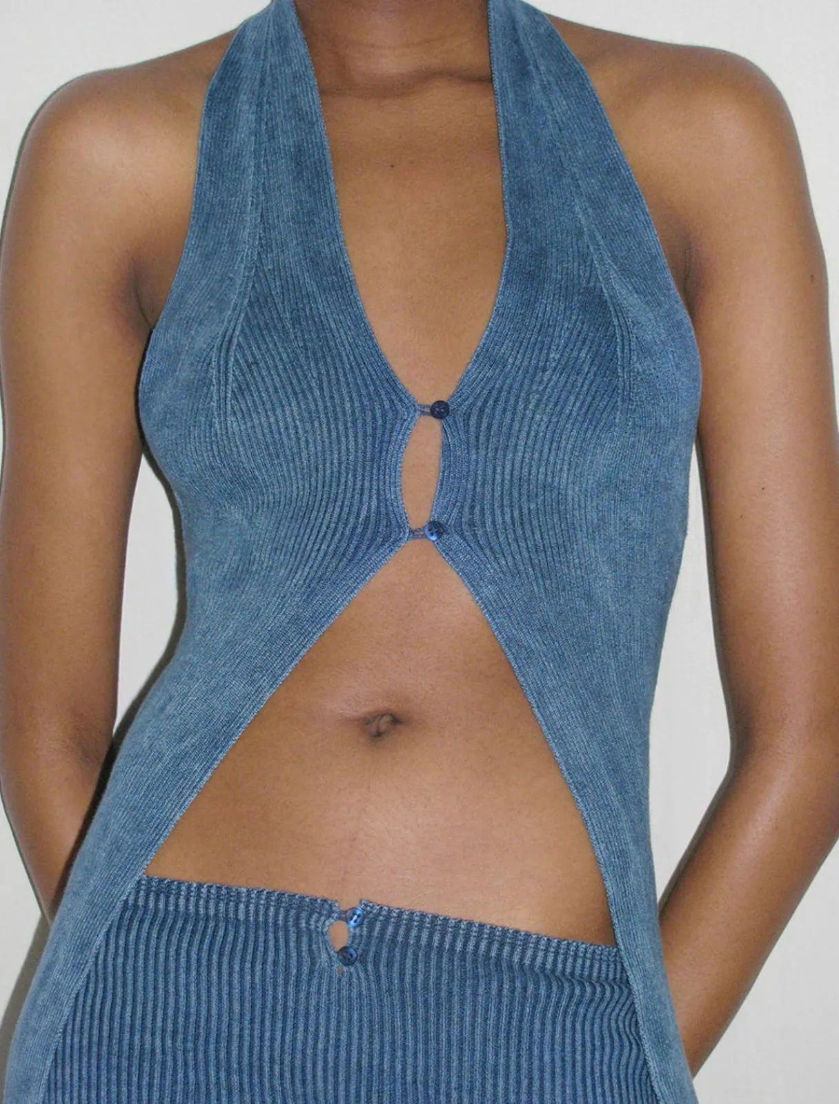 Vasket Grime-Top Med Indigo-Effekt Med Knappning Foran.