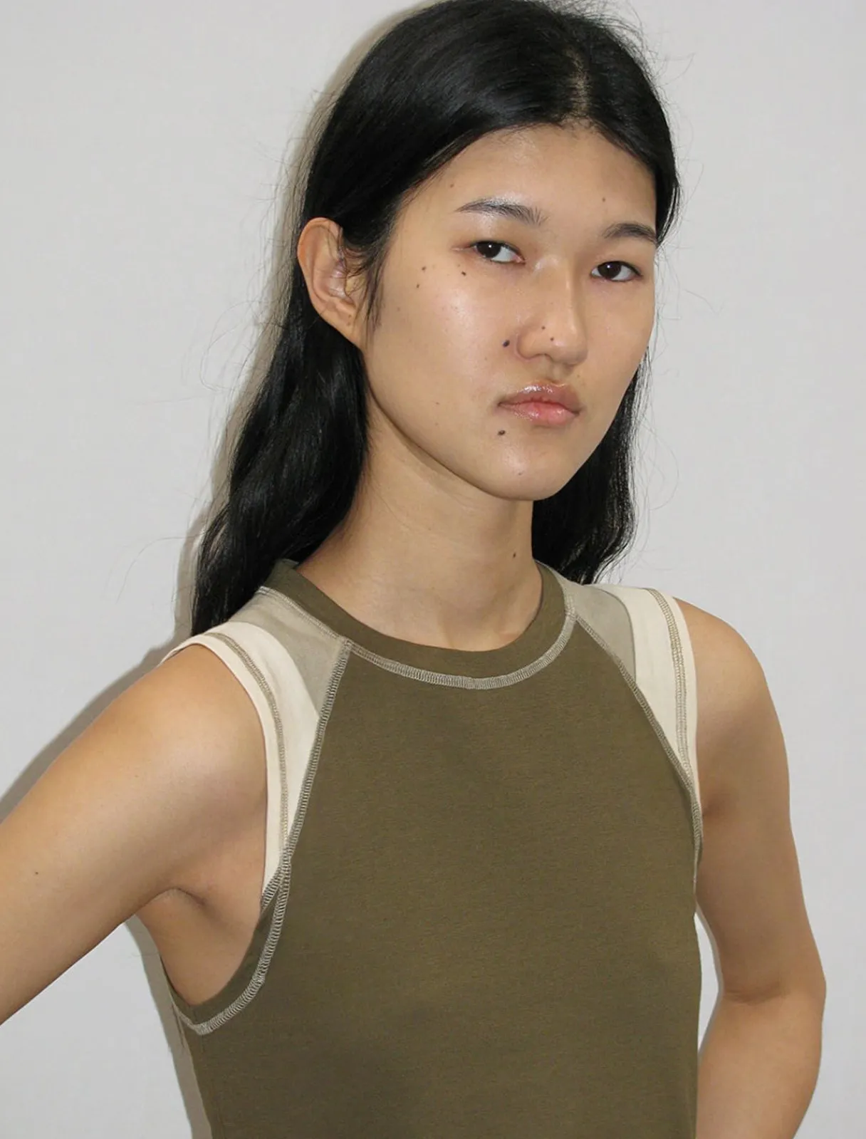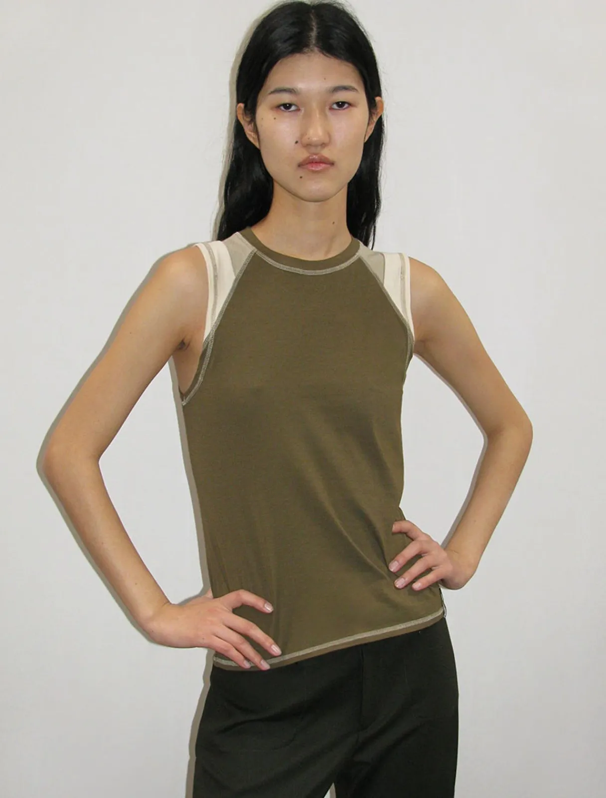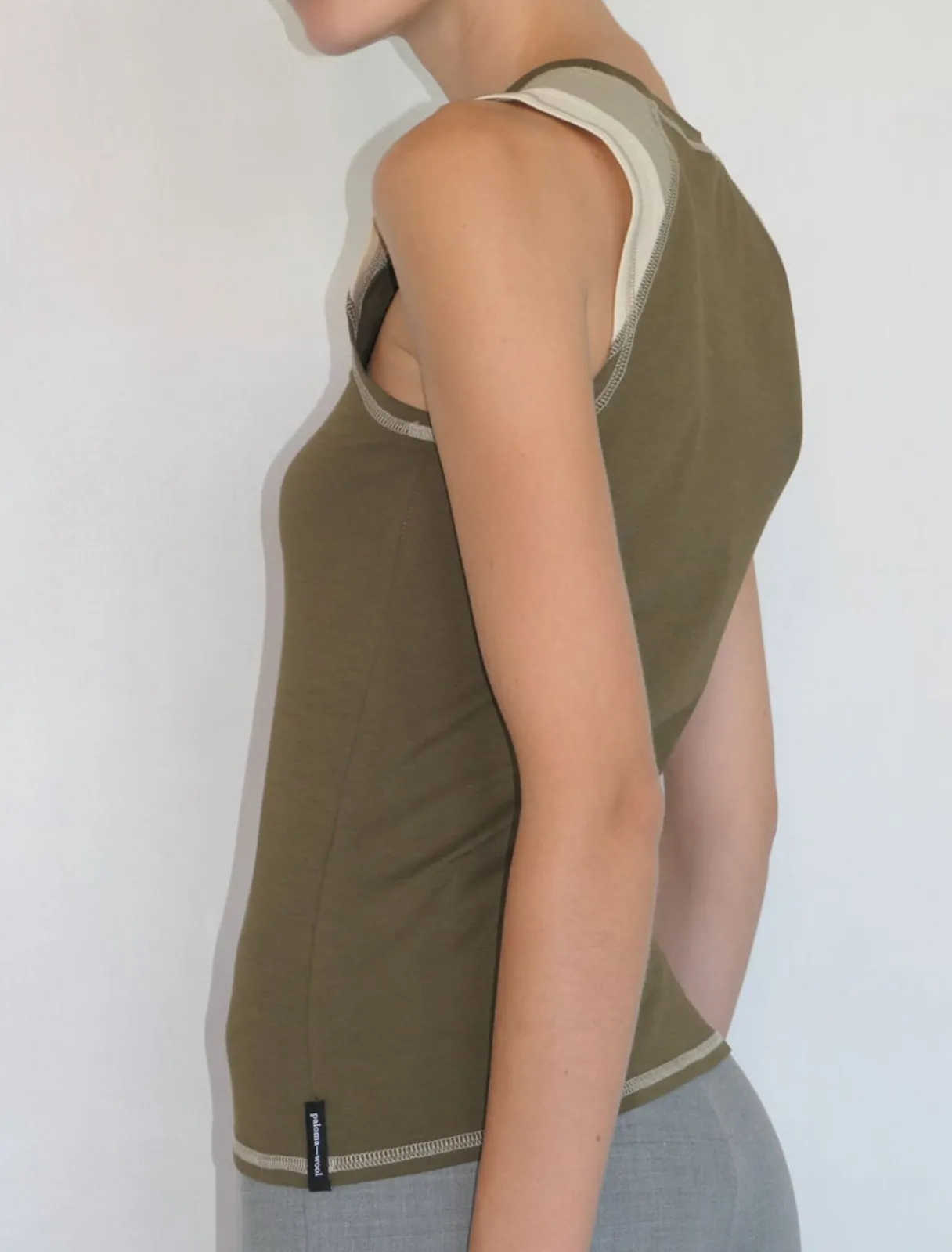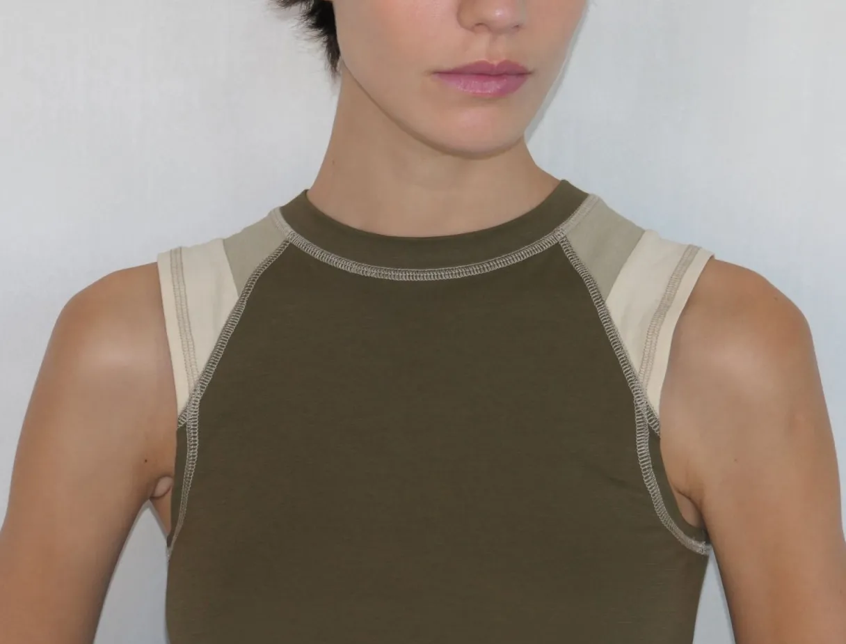 Økologisk Bomuld, Trefarvet Ærmeløs Top Med Paloma Uldlabel På Bunden.