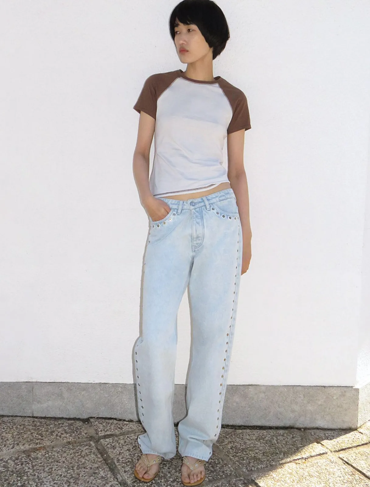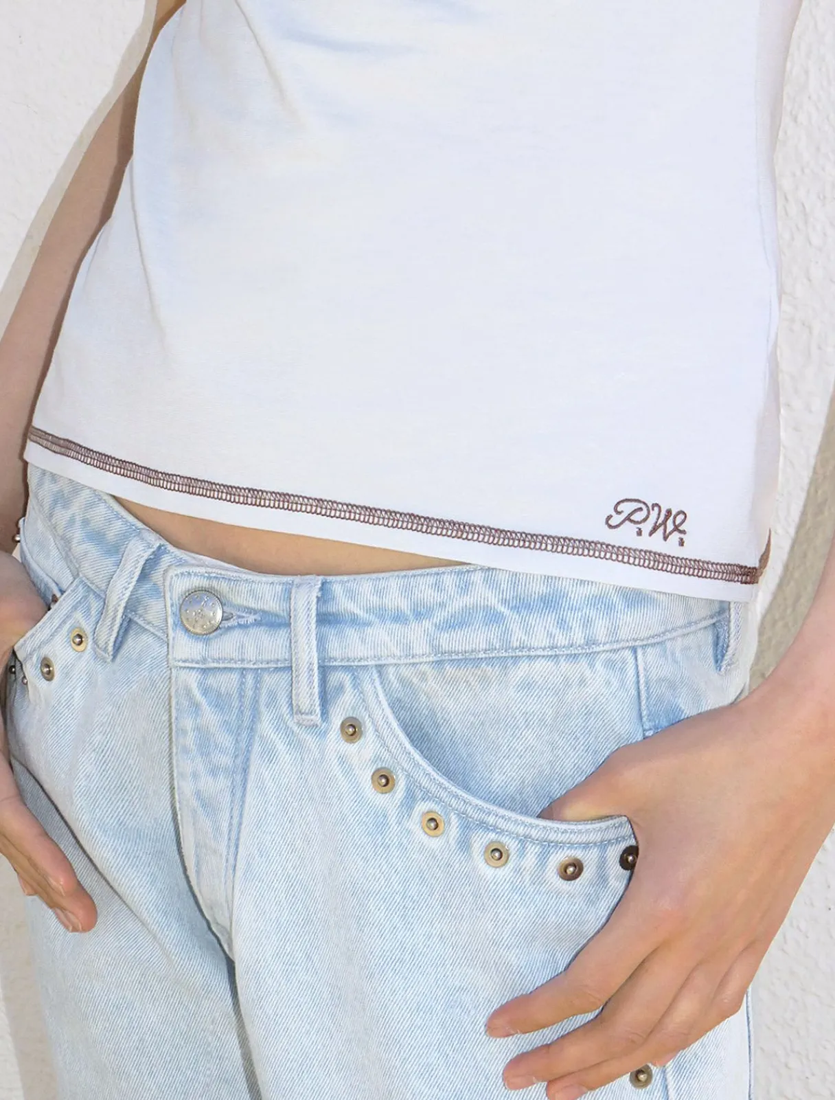 Økologisk Bomuld, Tofarvet T-Shirt Med Paloma Uldbroderi På Bunden.