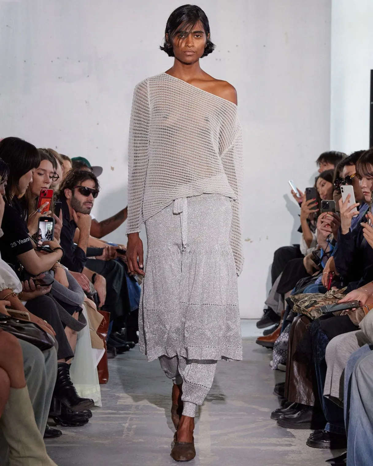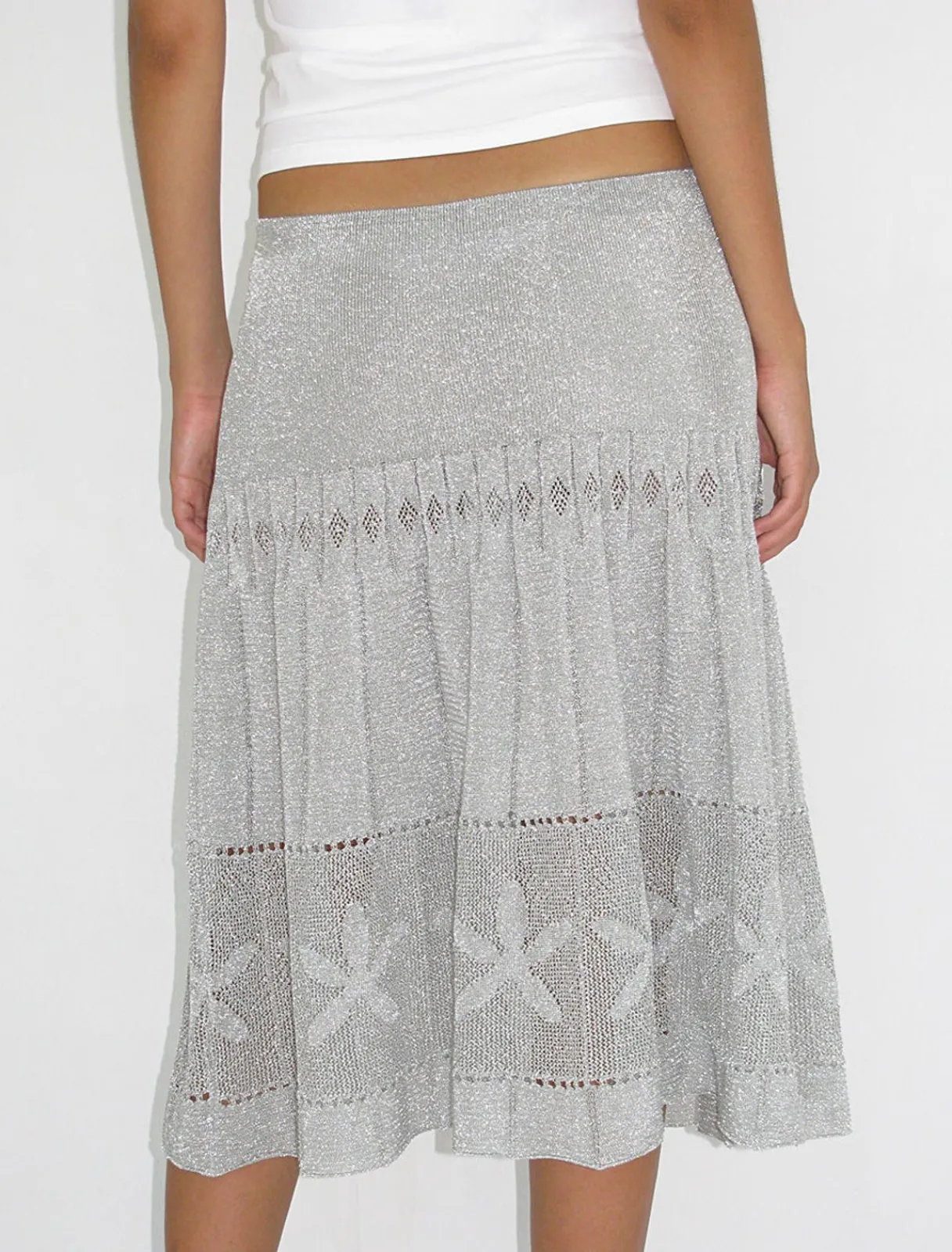 Metalisk Strikket Nederdel Med Udskæring Og Blandede Syninger.