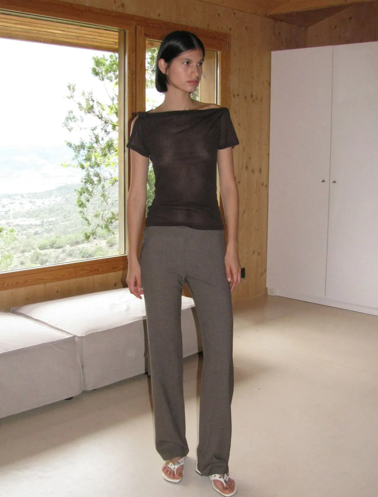 Bukser Med Lav Talje Med Foldet Stykke I Linningen Med Snor. Du Kan Bære Den Tabt Eller Binde Den.