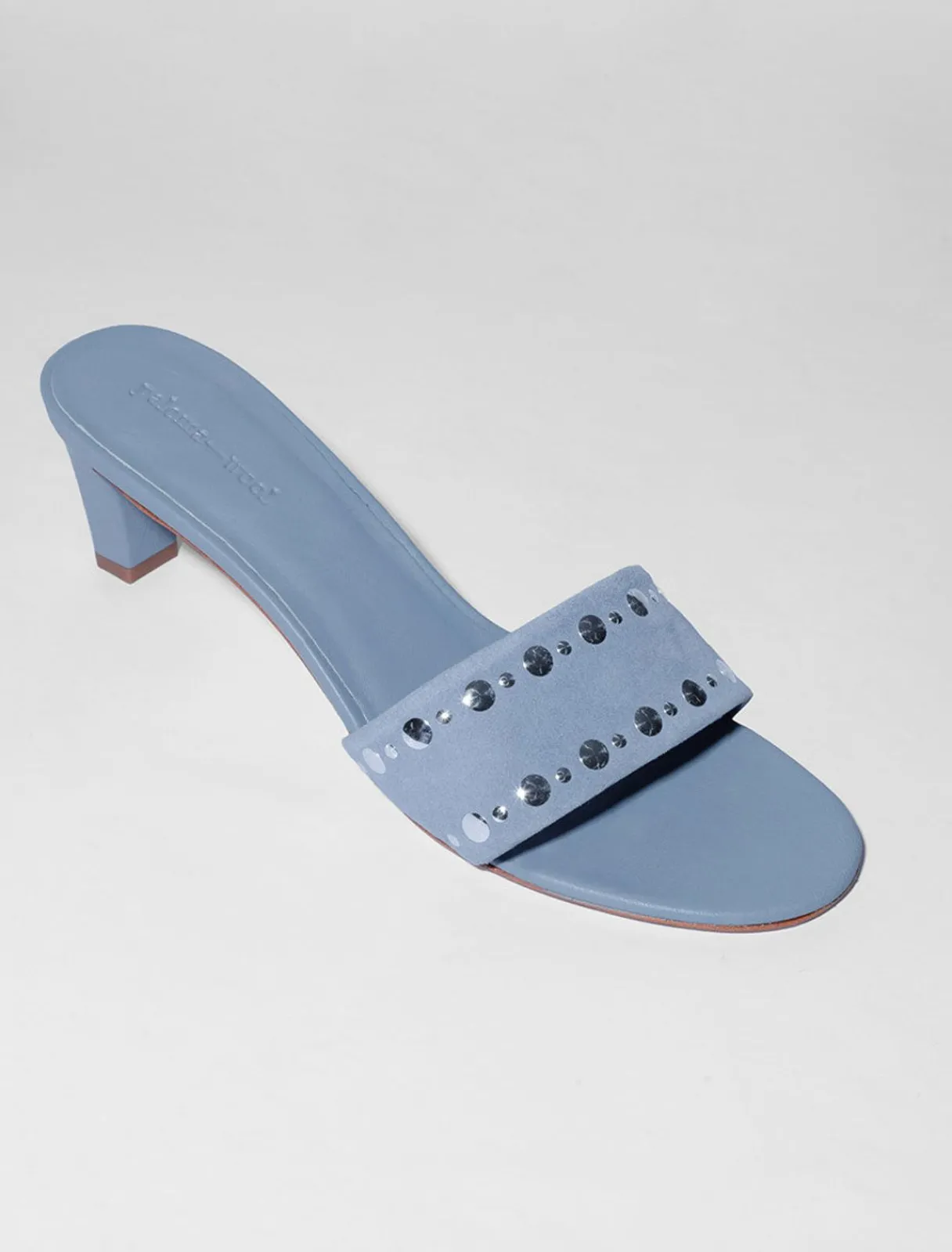 Lædersandal Med Nitter Med 4,5 Cm Hæl.