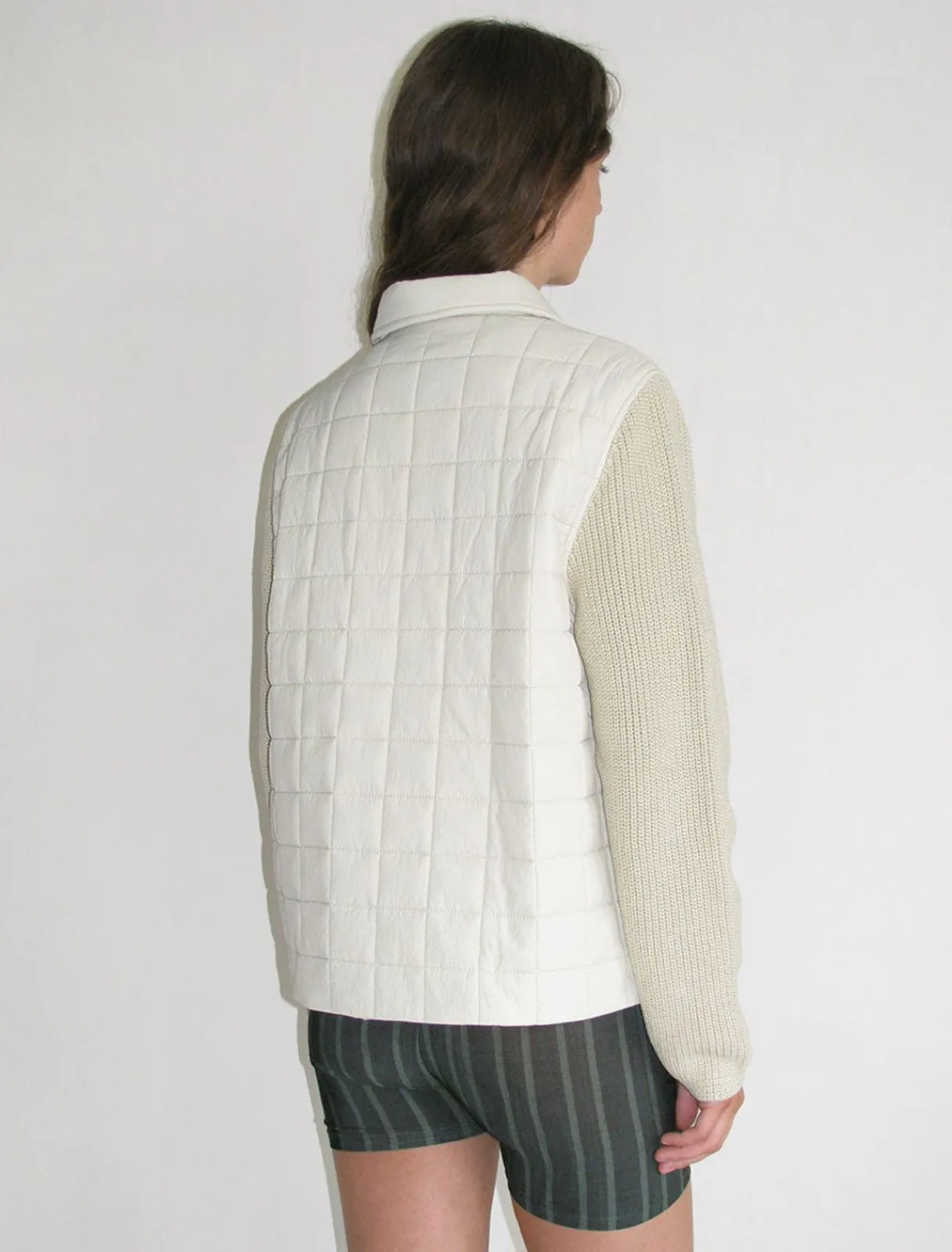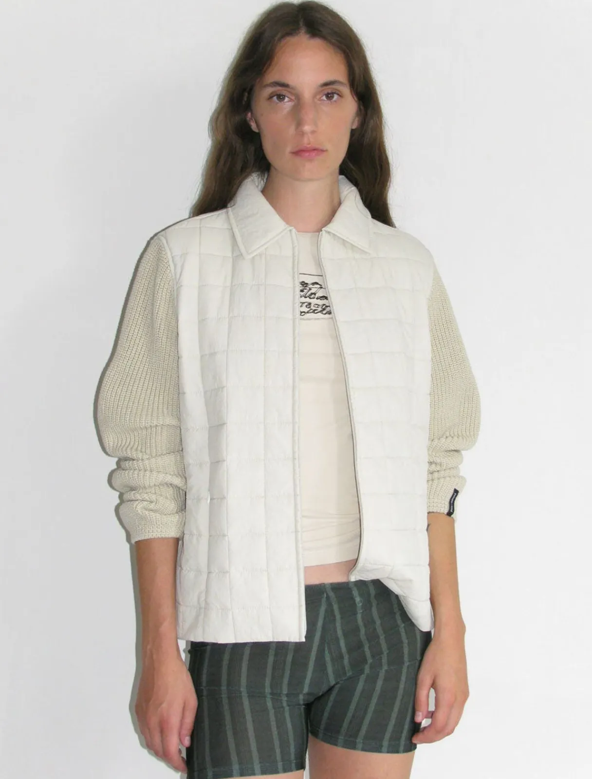Blandet Polstret Jakke Med Strikkede Ærmer Og Frontlommer Med Lynlås.