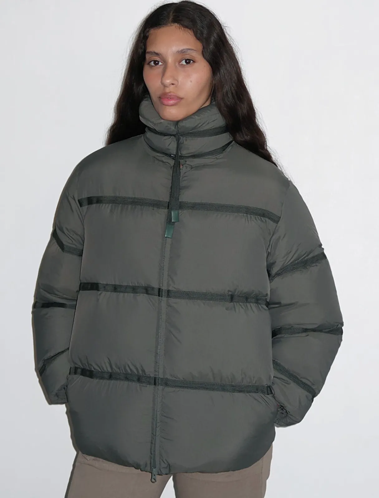 Overdimensioneret Genbrugsdunpuder Med Bånddetaljer På Sømme.