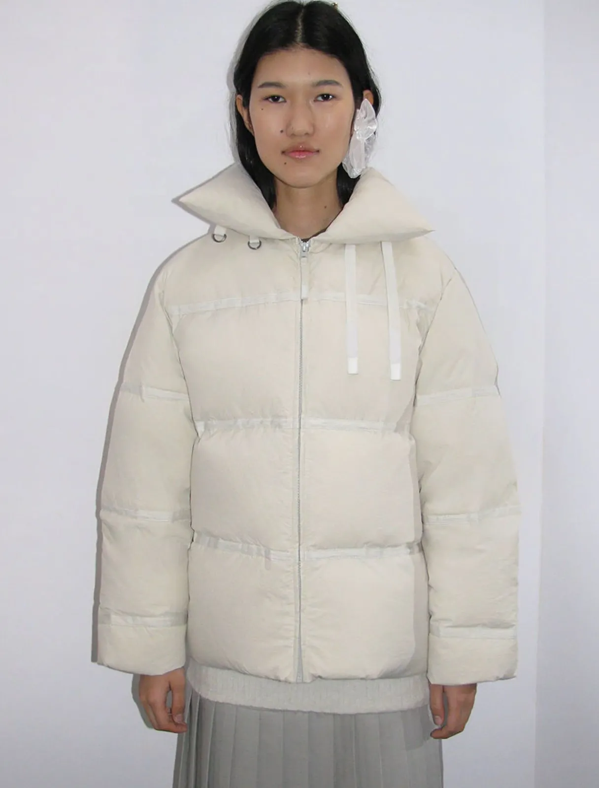 Overdimensioneret Genbrugsdunpuder Med Bånddetaljer På Sømme.
