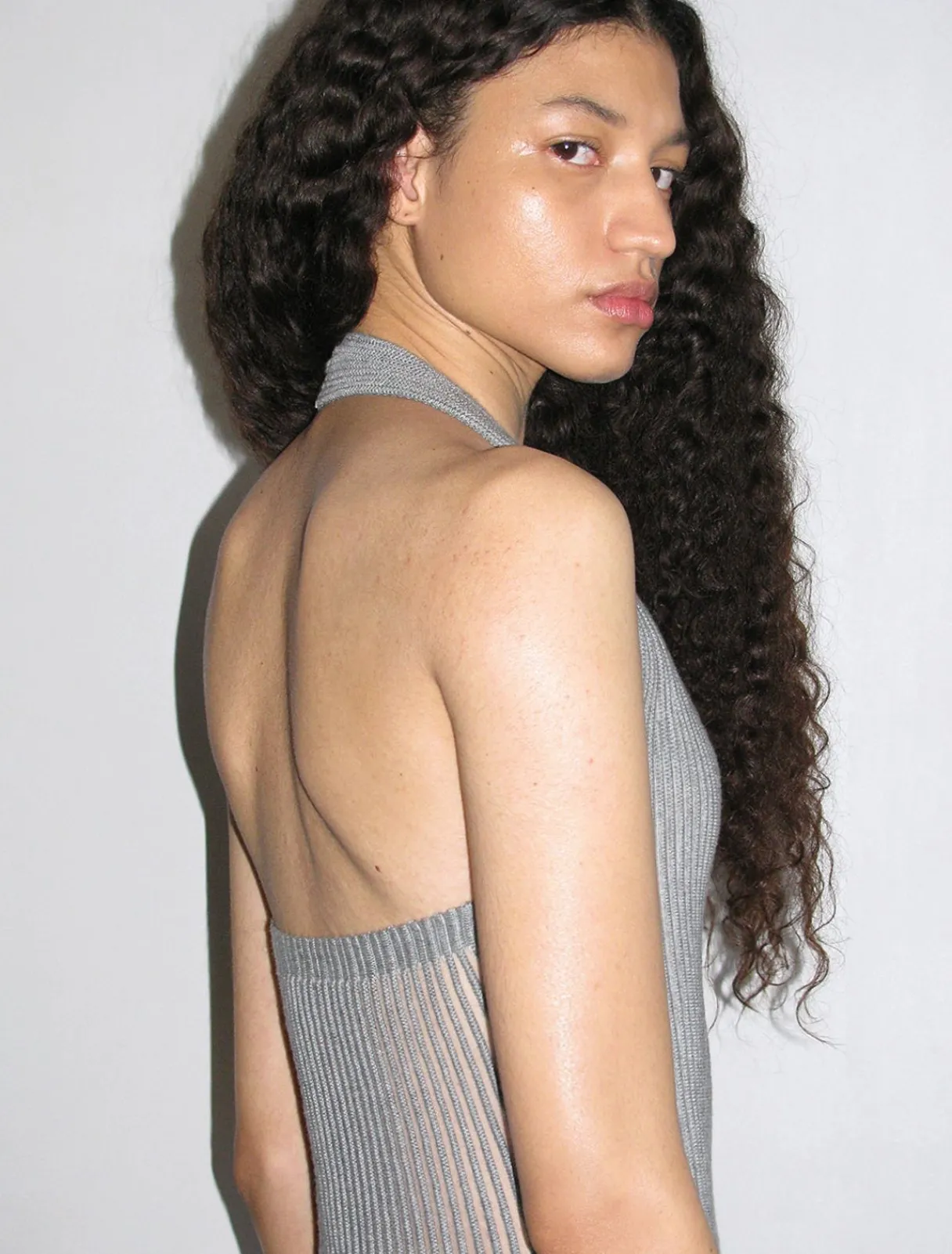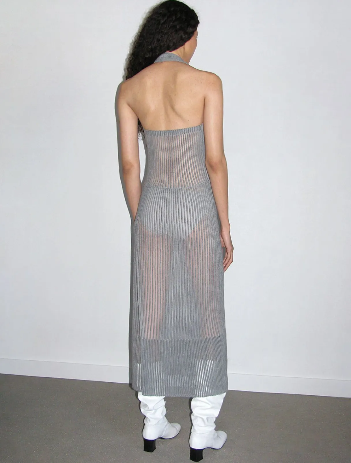 Halter Strikket Uldkjole Med En Blanding Af Garn Og Åben Søm.
