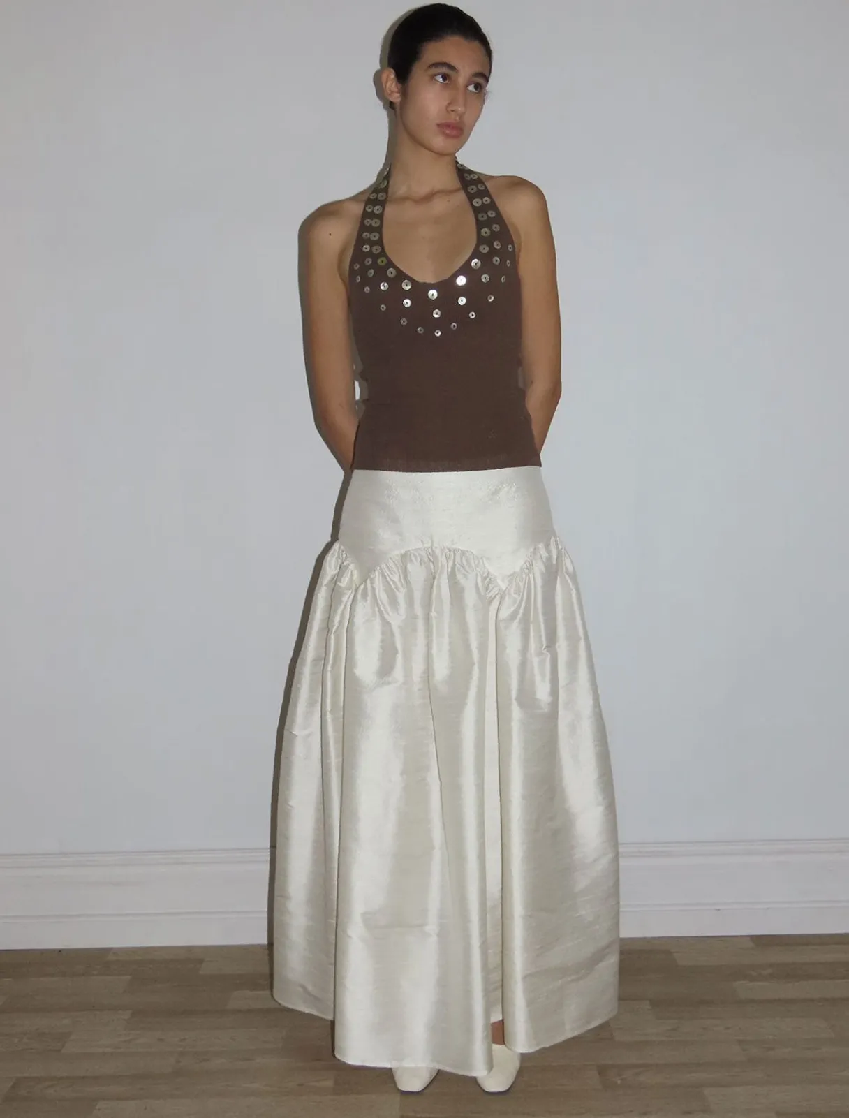 Halsudskæring Prydet Med Håndsyet Perlemor Knapper.