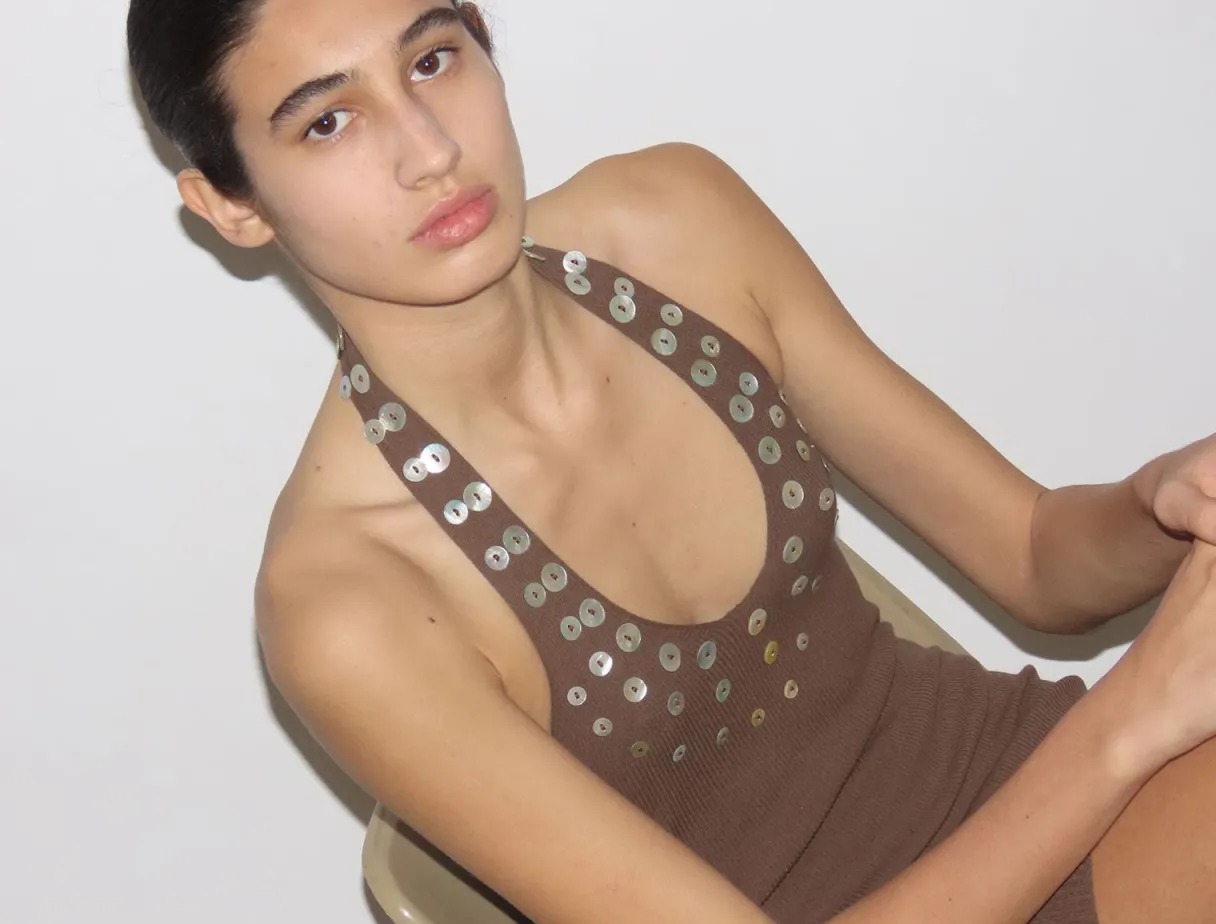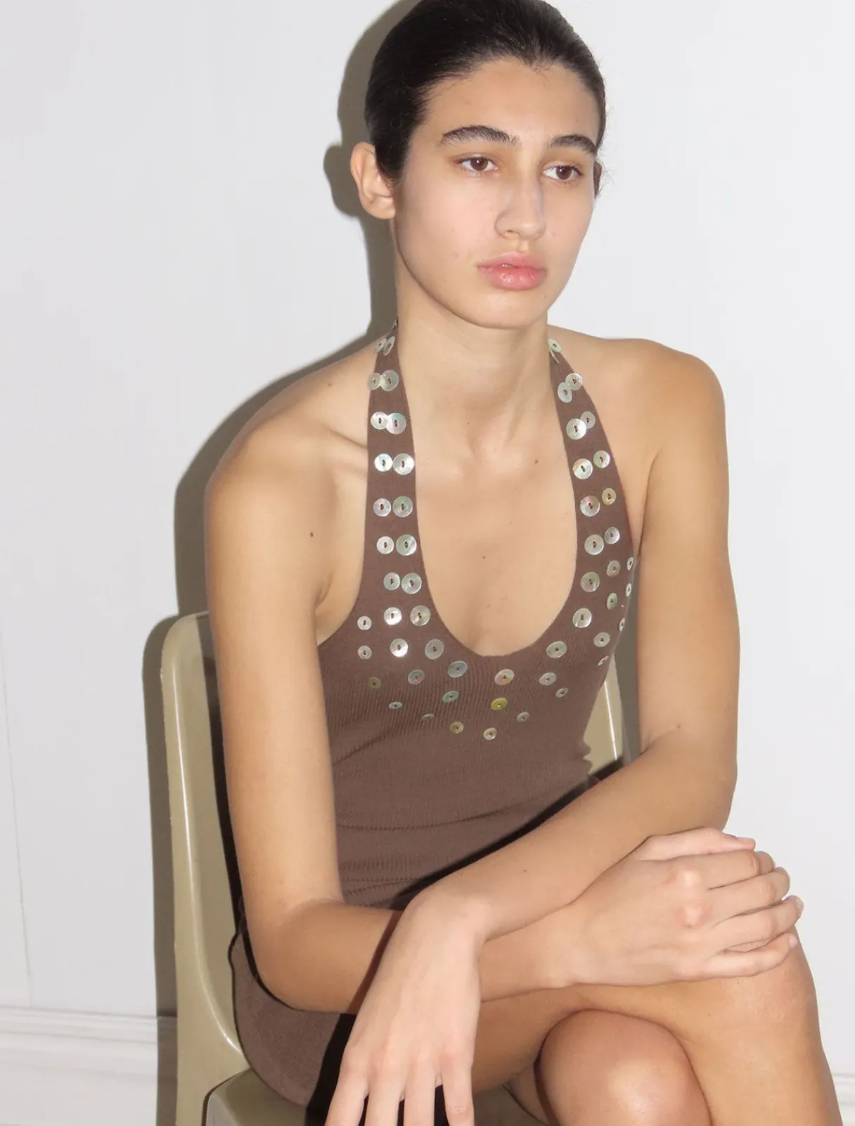 Strikket Grime-Minikjole Med Håndsyet Perlemor-Knapper På Halsudskæringen.