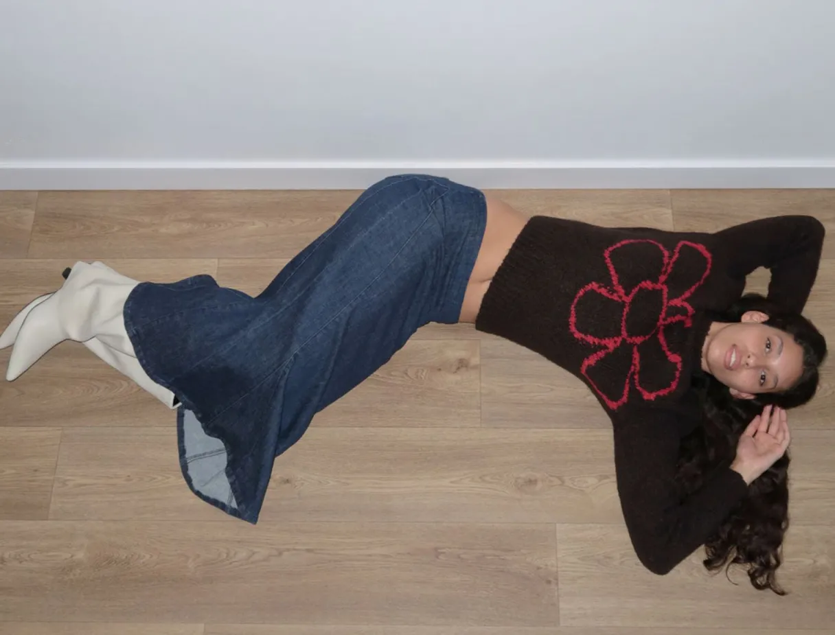 Blød Striktrøje Med Blomsterintarsia Foran.