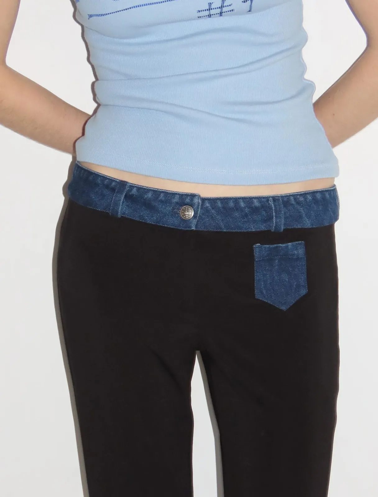 Lidt Gennemsigtige, Elastiske Viskosebukser Med Linning Og Lomme I Vasket Denim.