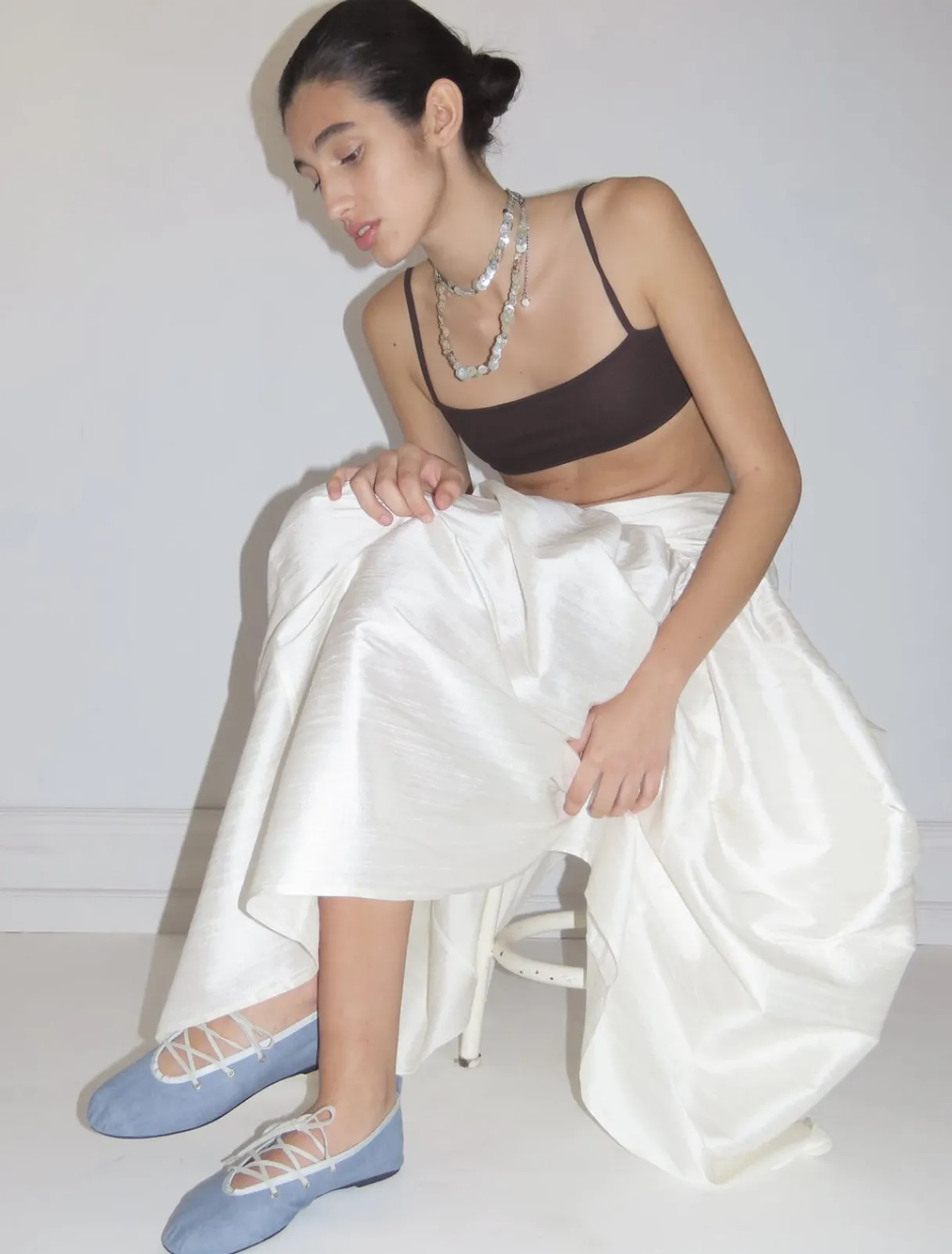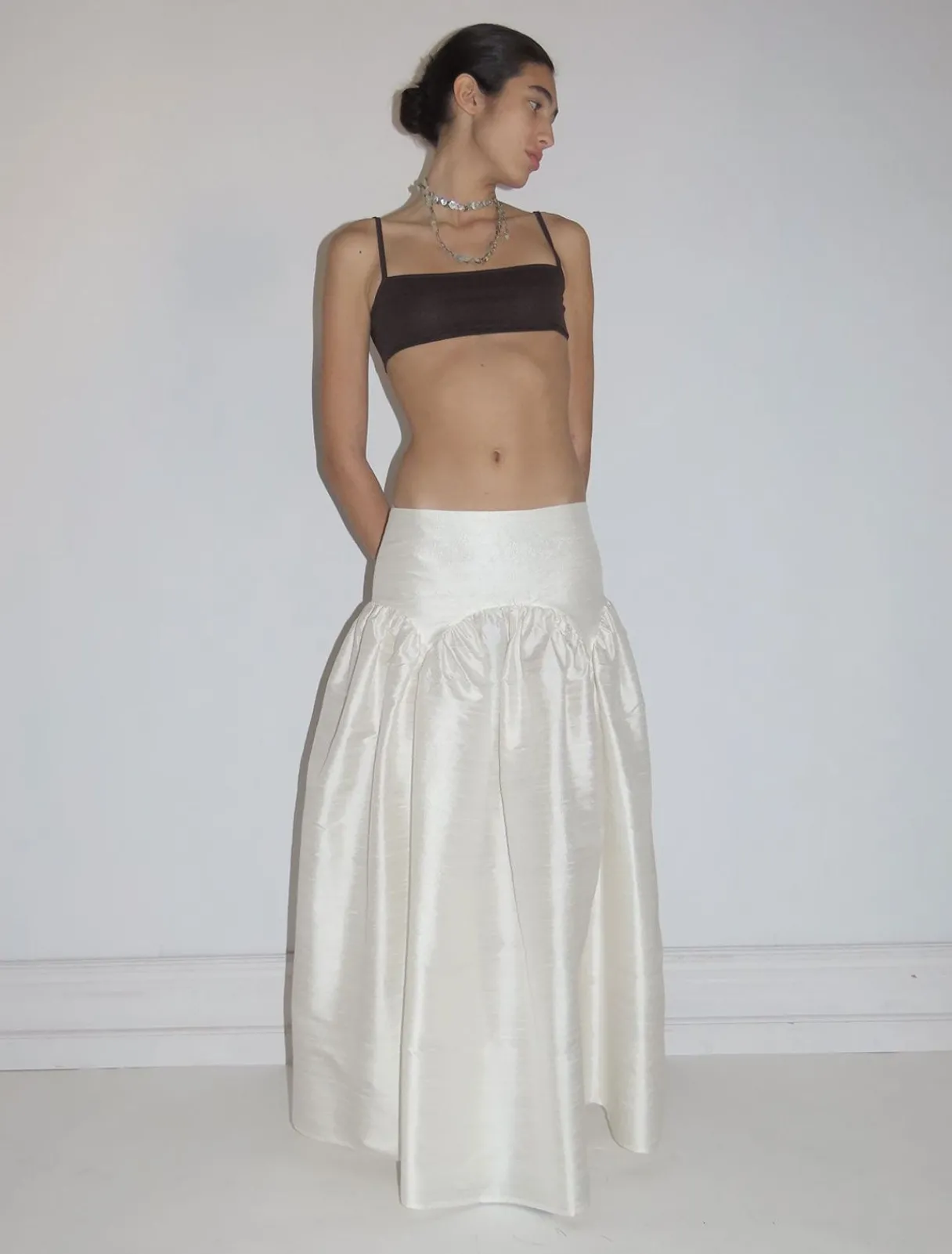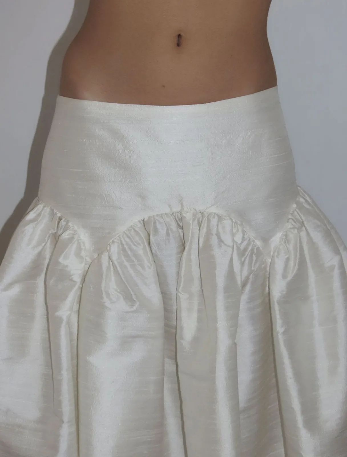 Puffy Nederdel I Silke Med Lav Talje. Lidt Mere Overdrevet End Guldpallen.