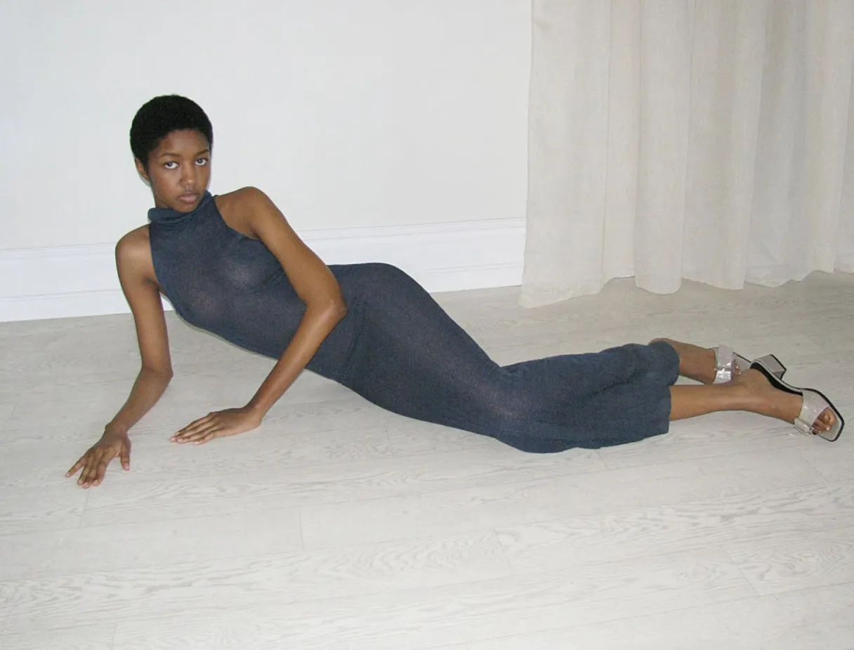 Draperet Højhalset Lang Kjole.