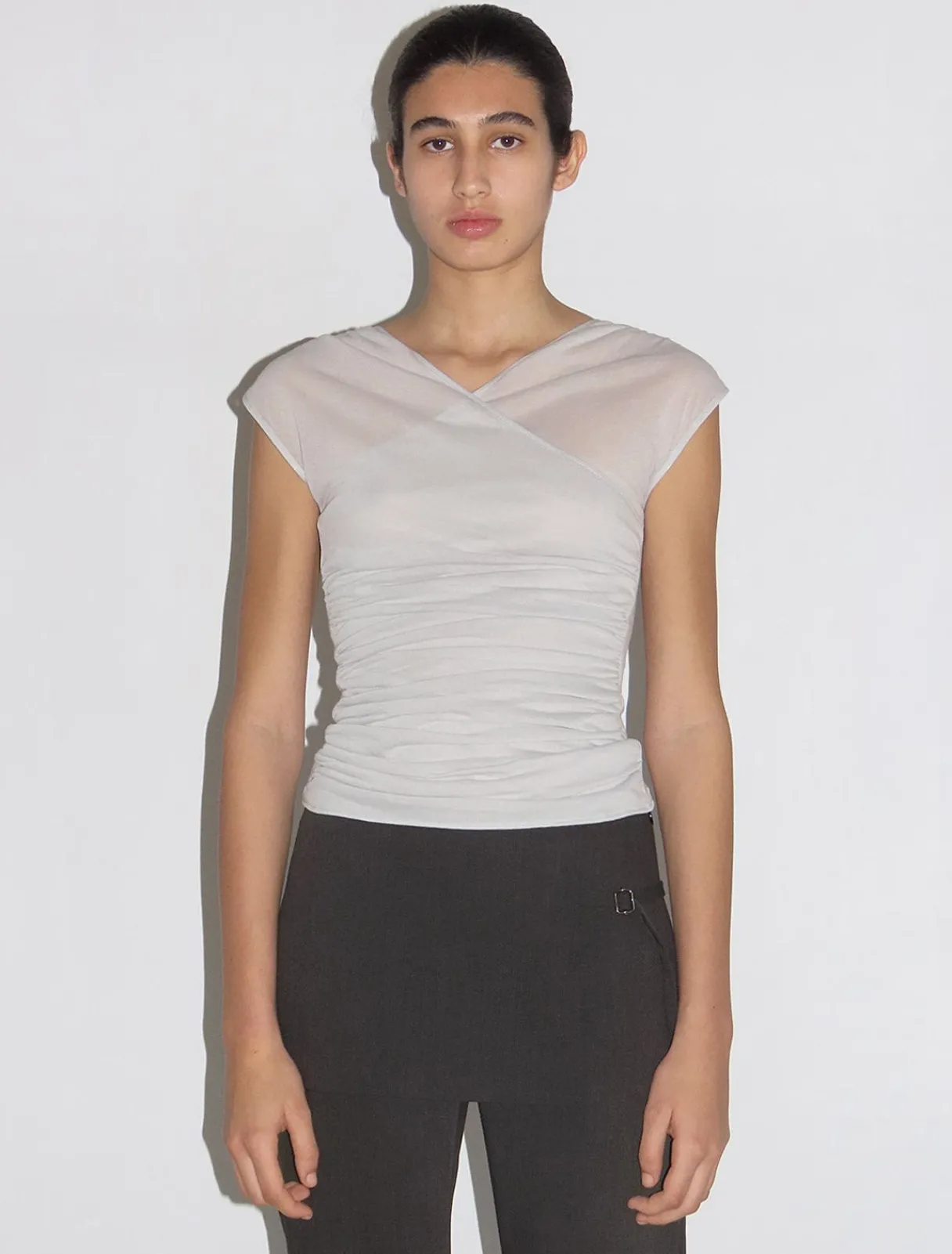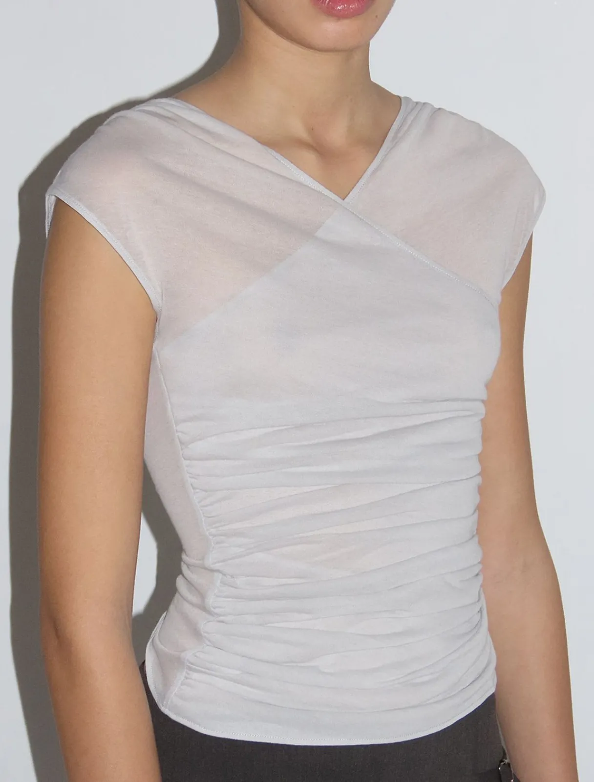 Sart, Let Gennemsigtig Krydstop. Stofoverlayet Giver Mere Dækning Foran End Bagpå.