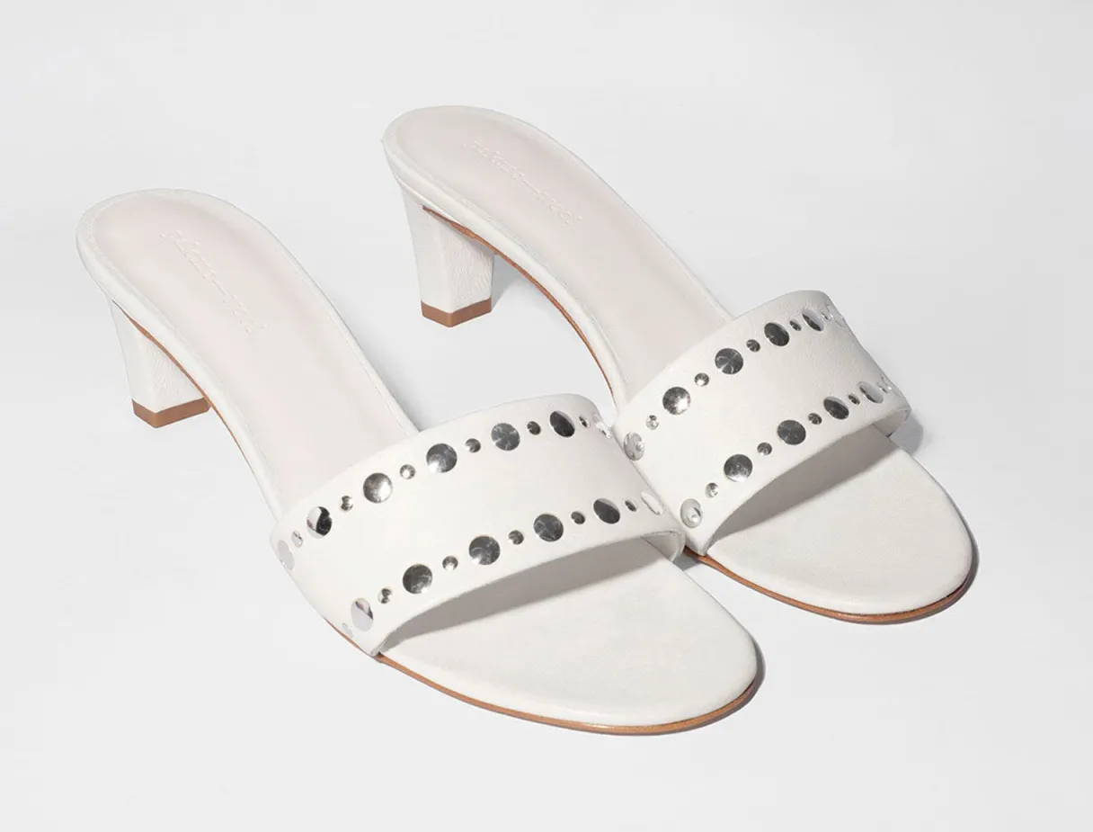 Lædersandal Med Nitter Med 4,5 Cm Hæl.