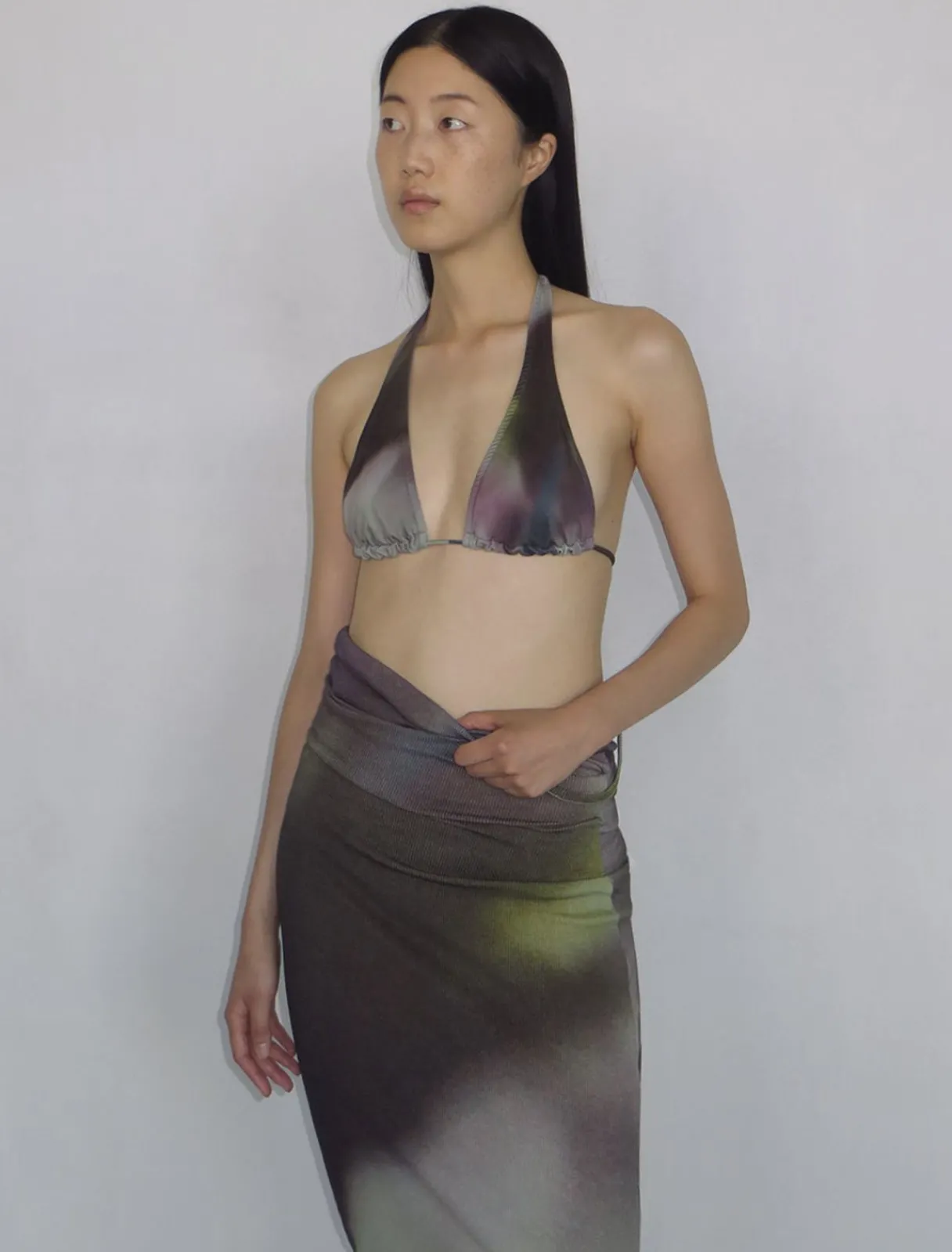 Justerbar Bikinitop Med Snoretræk Med Digitalt Print Med Sløret Blomsterbillede.