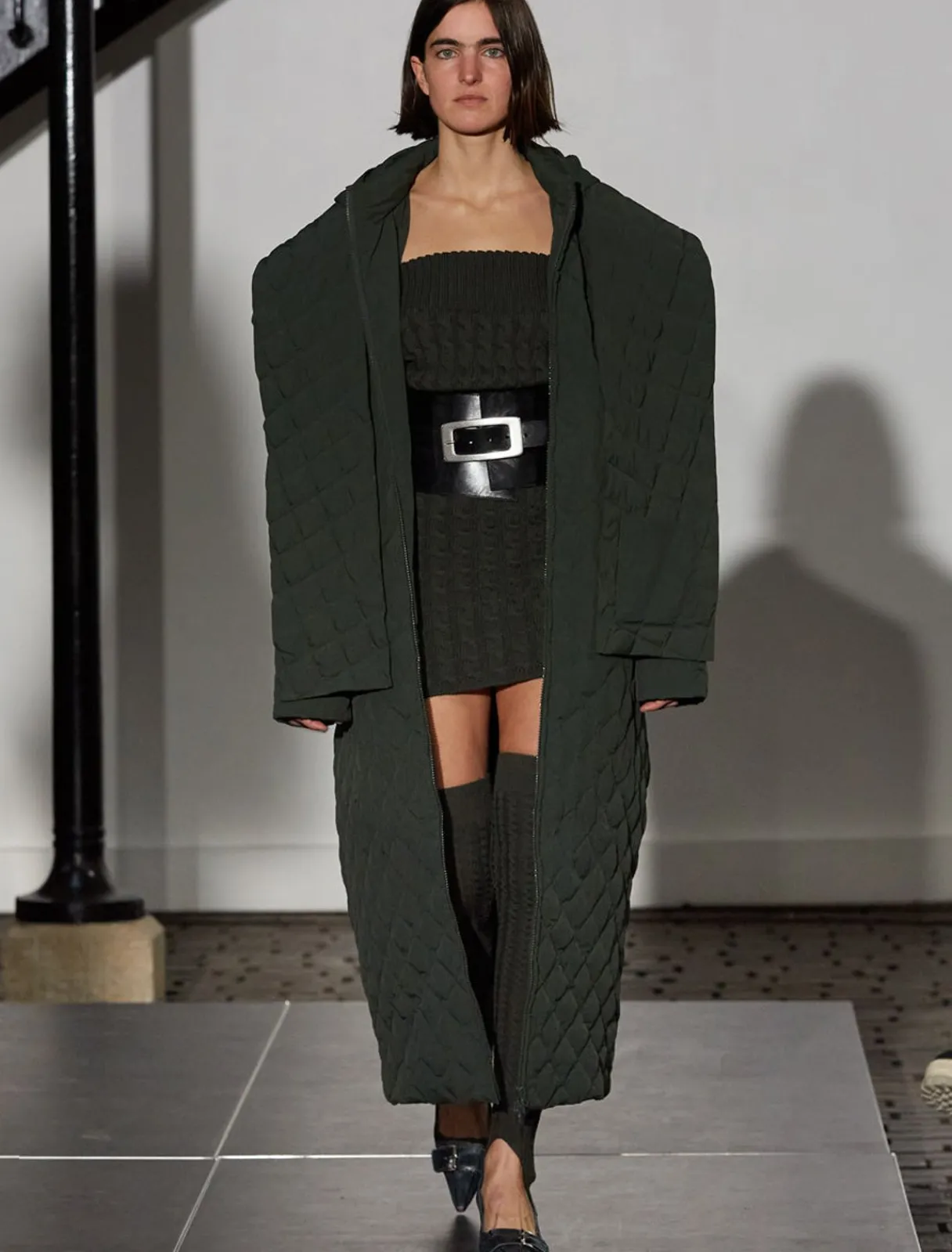 Lang Polstret Puffer Med Aftagelig Hætte/Tørklæde.