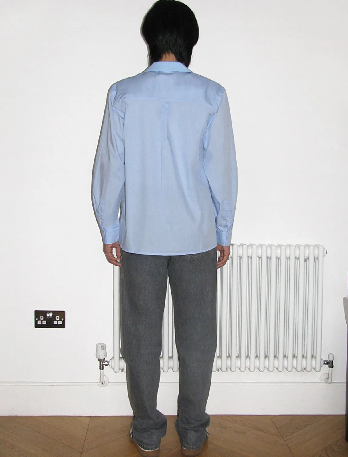 Klassisk Blå Skjorte Med Bred Pasform Til Mænd Med Dobbeltlags Top.