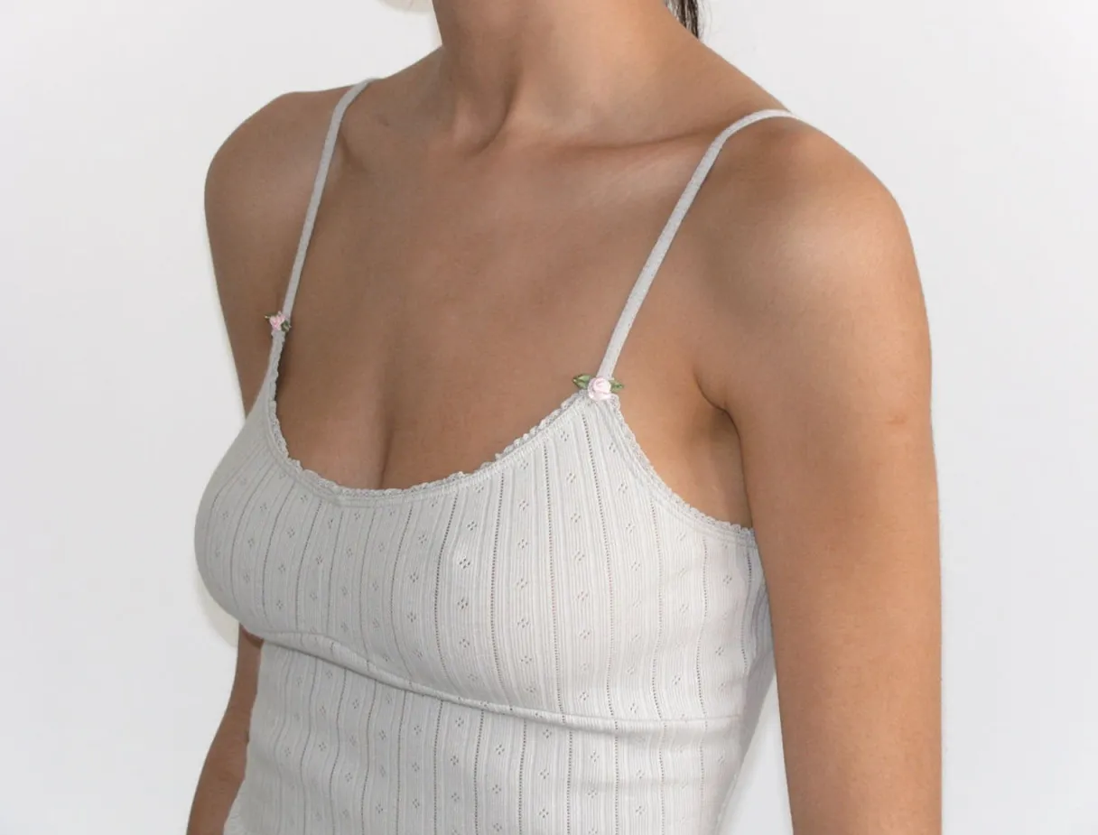 Strappy Top Med Rosetter Og Pw Initialer Broderi.