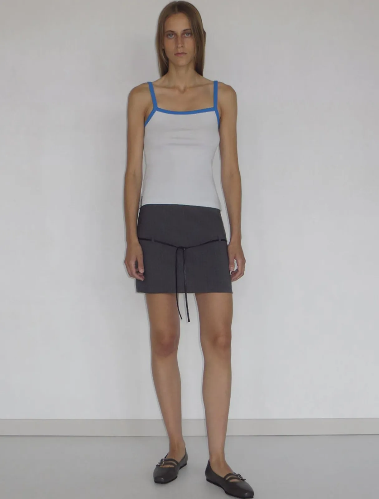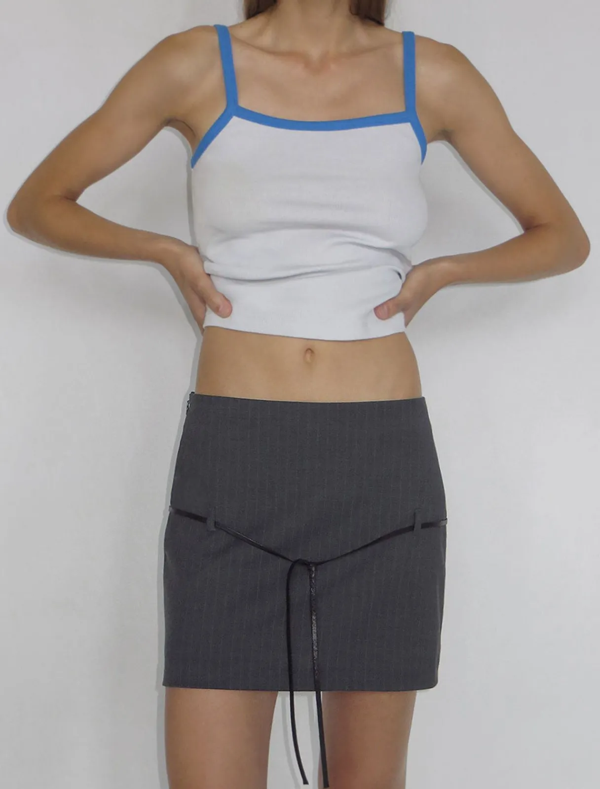 Nålestribet, Lavtaljet Mininederdel Med Blondedetaljer På Midten.