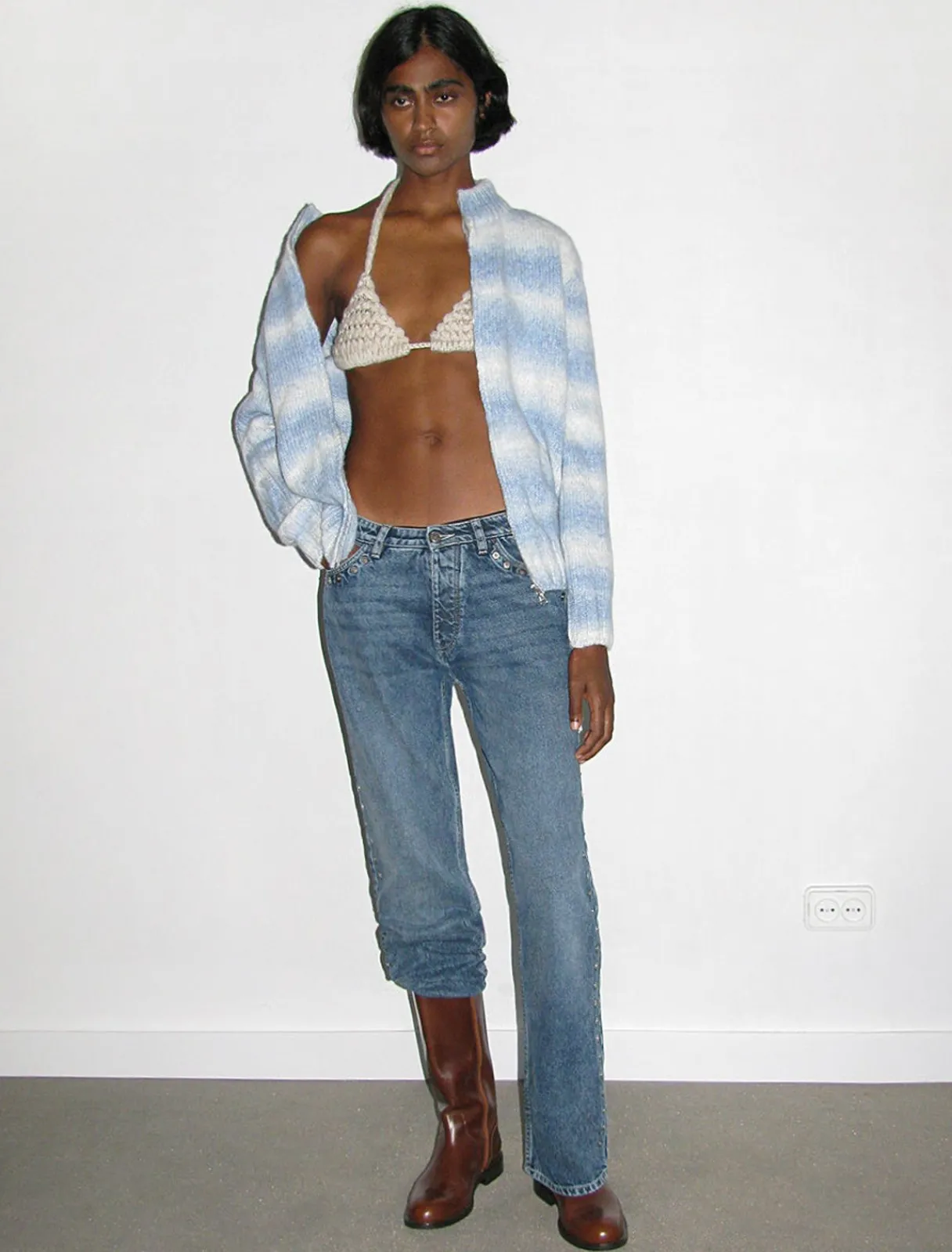 Blød, Gradient Strikket Cardigan Med Flettet Detalje Langs Ærmerne.