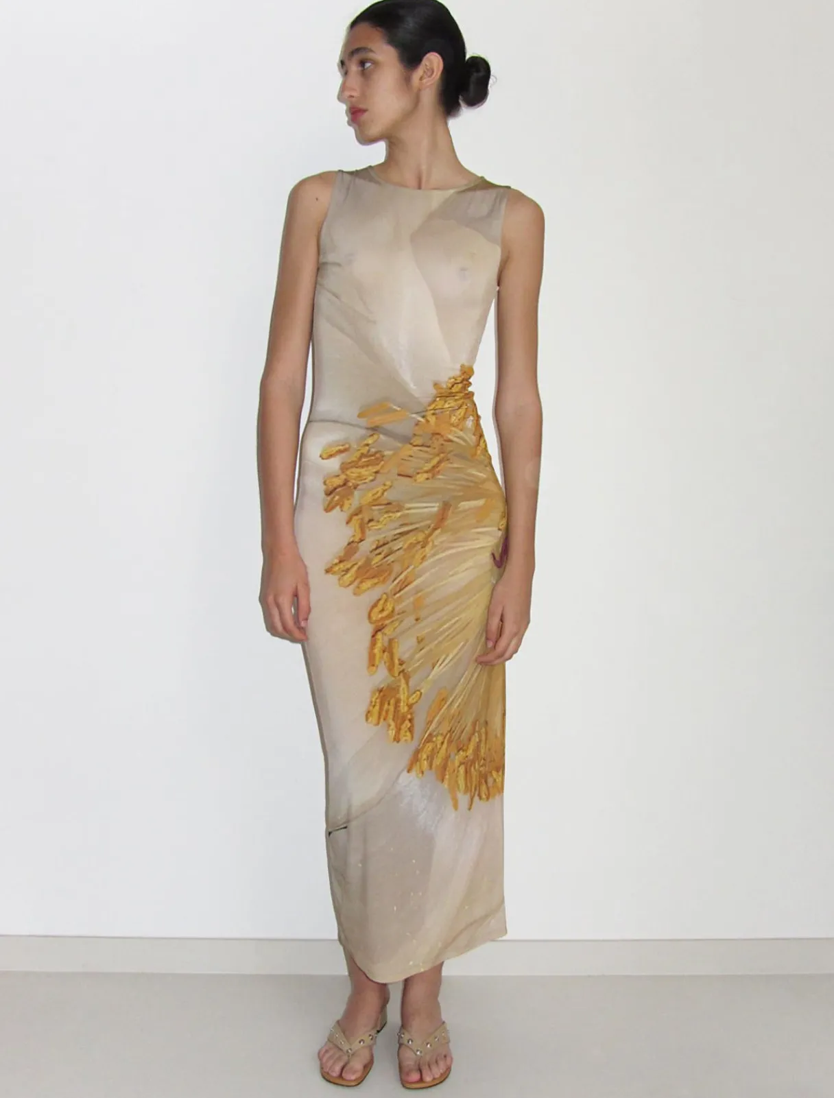 Langt Gennemsigtig, Figursyet Lang Kjole Med Blomsterprint.