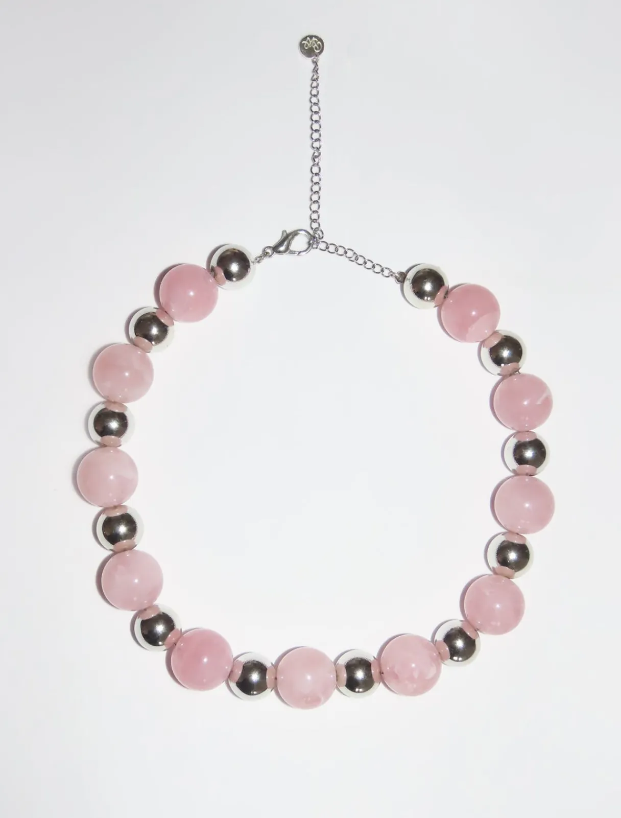 Justerbar Perlehalskæde. Blanding Af Harpiksperler Med Forsølvede Perler.