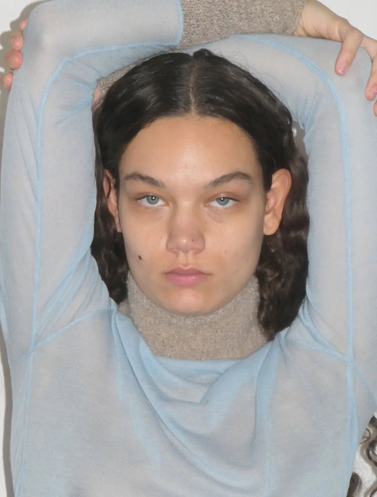 Delikat, Gennemsigtig, Højhalset Striktrøje Med Strikket Shearling-Effekt Rundt Om Halsen Og Manchetterne.