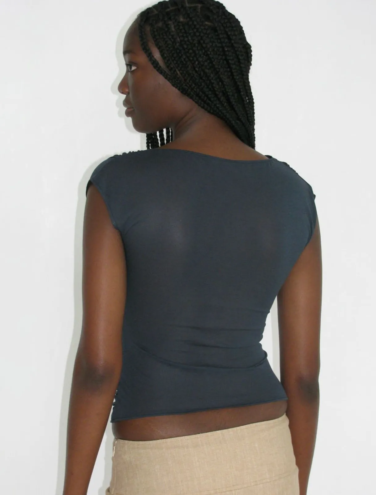Sart, Let Gennemsigtig Krydstop. Stofoverlayet Giver Mere Dækning Foran End Bagpå.