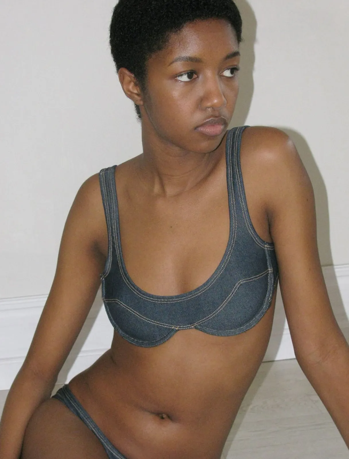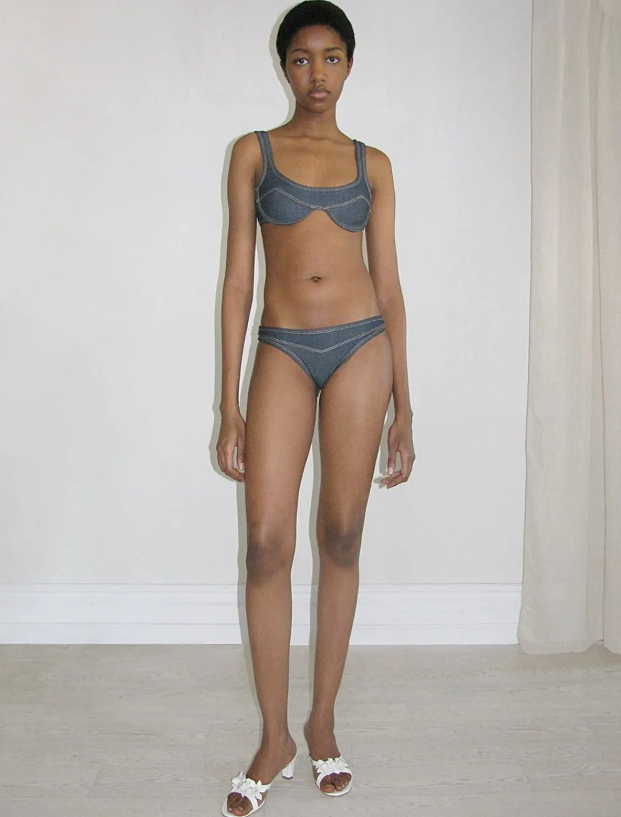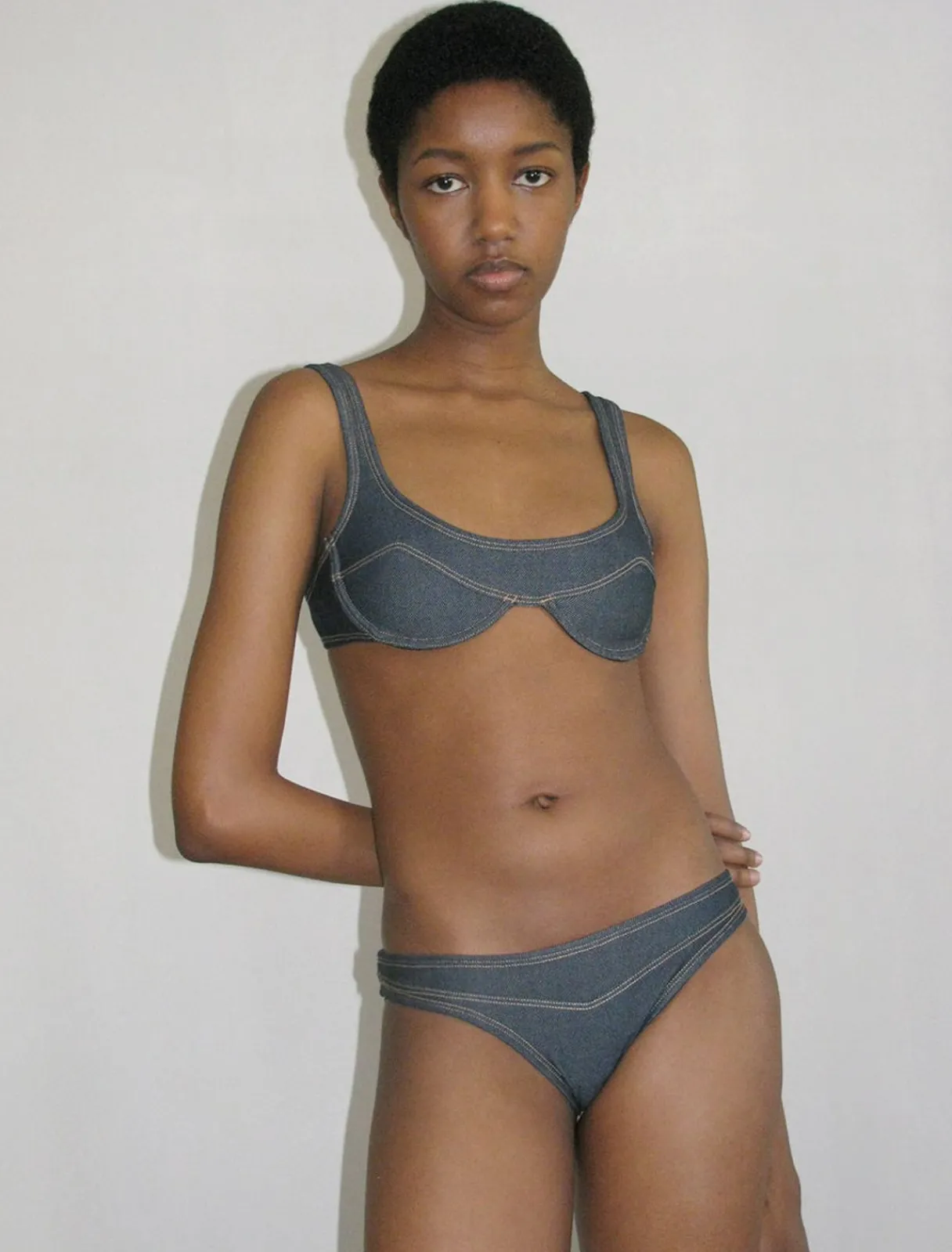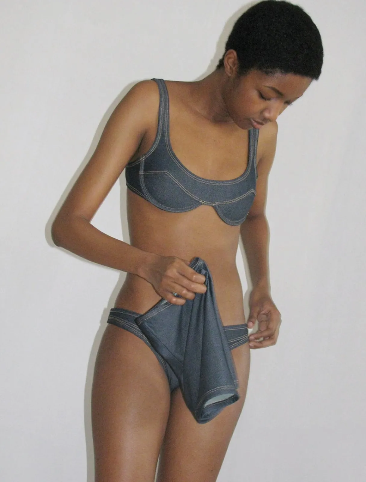 Bikinitop Med Denimeffekt. Skålene Har Bøjler.