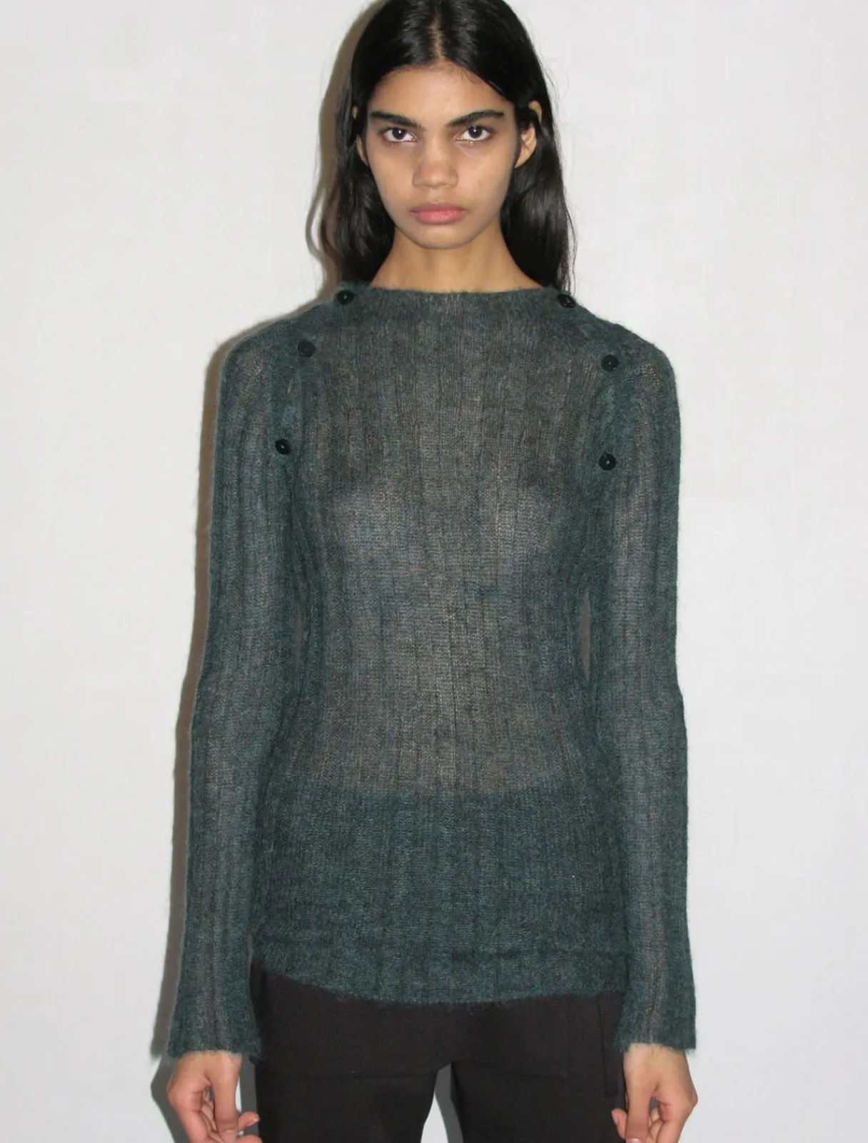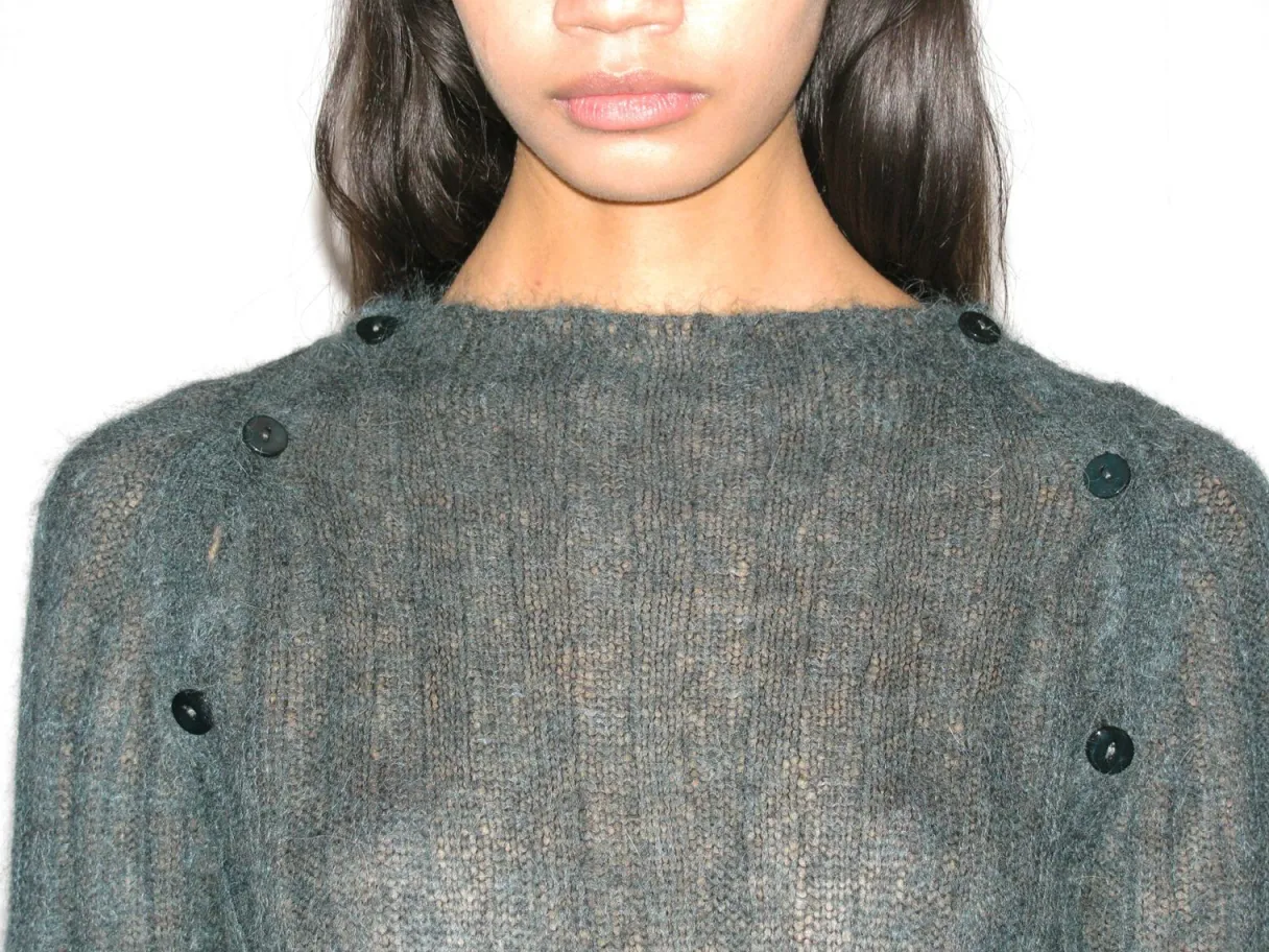 Langærmet Sweater Med Knappet Halsudskæring.
